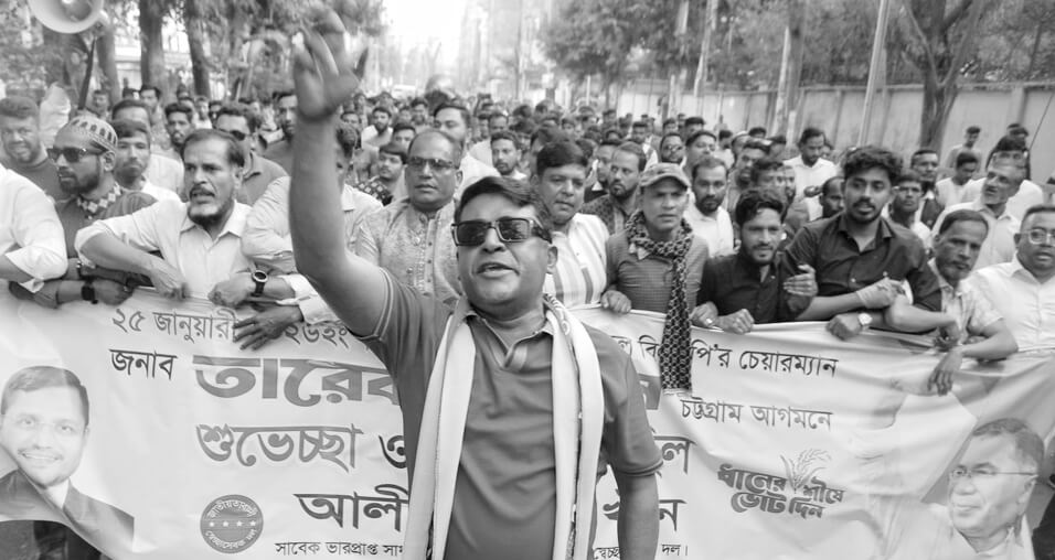 বিএনপির ভারপ্রাপ্ত চেয়ারম্যান তারেক রহমানের চট্টগ্রাম আগমনকে স্বাগত জানিয়ে নগরীতে আনন্দ মিছিল বের করেছে মহানগর স্বেচ্ছাসেবক দলের একাংশ। গত ২৩ জানুয়ারি আলী মর্তুজা খানের নেতৃত্বে মিছিলটি নগরীর বিআরটিসি বাস টার্মিনাল শুরু হয়ে নগরীর বিভিন্ন সড়ক প্রদক্ষিণ করে নাসিমন ভবনস্থ দলীয় কার্যালয়ের সামনে গিয়ে শেষ হয়। আনন্দ মিছিলে মহানগর স্বেচ্ছাসেবক দলের বিভিন্নস্তরের নেতাকর্মীরা অংশ নেন। এতে উপস্থিত ছিলেন হারুনুর রশিদ, আলমগীর, আব্দুল মান্নান, নুহুগাজী সেলিম, জহির আহমেদ, মোহাম্মদ মিজান, আরাফাত, দুলাল, শামীম, আনোয়ার আবেদিন মুন্না, মোহাম্মদ শহিদ, আবু সালেহ আবিদ, মোহাম্মদ জাহাঙ্গীর, আলী হাসান খান, আলী আক্কাস খান, আনিসুল ইসলাম রুবেল, মোহাম্মদ রাজু, মোহাম্মদ আসিফ, সানাউল্লাহ সানি, অনিক, মো. রনি প্রমুখ। তারা এই আগমনকে ঘিরে যেকোনো কর্মসূচি সফল করার অঙ্গীকার ব্যক্ত করেন। প্রেস বিজ্ঞপ্তি।