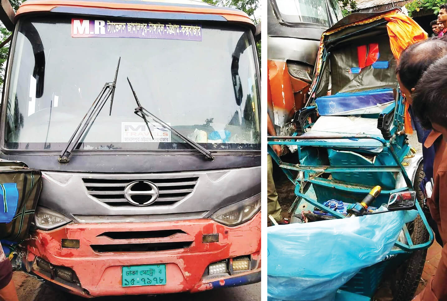 প্রত্যক্ষদর্শীরা জানান, ঘটনাস্থলে কক্সবাজারমুখী এম.আর ট্রাভেলসের যাত্রীবাহী বাস ওভারটেক করতে গিয়ে বিপরীতমুখী দুটি ব্যাটারিচালিত রিক্সার সাথে মুখোমুখি সংঘর্ষ হয়। এতে ব্যাটারিচালিত রিক্সাচালক ও তিন যাত্রীসহ চারজন আহত হন। স্থানীয়রা তাদেরকে উদ্ধার করে উপজেলা সদরের বিভিন্ন হাসপাতালে ভর্তি করেন। গুরতর আহত মোহাম্মদ রাবিবকে প্রাথমিক চিকিৎসা শেষে আশংকাজনক অবস্থায় চট্টগ্রাম মেডিকেল কলেজ হাসপাতালে প্রেরণ করা হয়েছে।