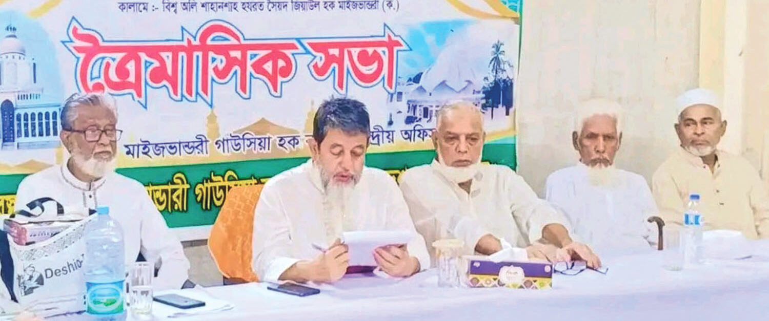 মাইজভাণ্ডারী গাউসিয়া হক কমিটি কেন্দ্রীয় পর্ষদের ত্রৈমাসিক সভা গত ১৯ এপ্রিল নগরীর পাঁচলাইশস্থ অস্থায়ী কার্যালয়ে অনুষ্ঠিত হয়। এতে সভাপতিত্ব করেন মাইজভাণ্ডারী গাউসিয়া হক কমিটি কেন্দ্রীয় পর্ষদের সভাপতি রেজাউল আলী জসীম চৌধুরী। কেন্দ্রীয় পর্ষদ সদস্য মোহাম্মদ আলমগীর ও দিদারুল আলমের যৌথ সঞ্চালনায় সভায় বক্তব্য রাখেন কেন্দ্রীয় পর্ষদ সহসভাপতি এওয়াইএমডি জাফর, সৈয়দ ফরিদ উদ্দিন আহমদ, সাংগঠনিক সম্পাদক কাজী মো. ইউসুফ, সদস্য শেখ মুজিবুর রহমান বাবুল, সাহেদ আলী চৌধুরী, এইচ.এম জসিম উদ্দীন (জিকো), এসএম মোর্শেদুল আমিন, মোহাম্মদ হারেছ, শফিউল আজম নিজাম, এম মকসুদুর রহমান হাসনু, মোহাম্মদ আলী, ইউসুফ আলী, মো. রেজোয়ান নূর সিদ্দিকী উজ্জ্বল, মো. আশরাফুজ্জামান, এইচ এম আলী আবরাহা দুলাল, আশরাফ সিদ্দিকী, মোহাম্মদ আজম, মো. নাসির উদ্দীন প্রমুখ।সভায় ত্রৈমাসিক প্রতিবেদন পাঠ করা হয় এবং বিগত সভার সিদ্ধান্তসমূহ অনুমোদিত হয়। সভায় ১৬ মে মাইজভাণ্ডারী গাউসিয়া হক কমিটির কেন্দ্রীয় সম্মেলন উদ্যাপনের প্রস্তুতি বিষয়ে সিদ্ধান্ত হয়। মোনাজাত পরিচালনা করেন মাওলানা হাবিবুল হোসাইন। প্রেস বিজ্ঞপ্তি।