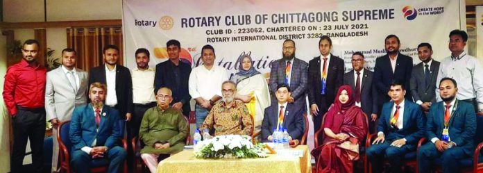 রোটারি ক্লাব অব চিটাগং সুপ্রিম এর ৩য় অভিষেক ও ২য় প্রতিষ্ঠাবার্ষিকী গত ২৪ অক্টোবর নগরীর একটি হোটেলে অনুষ্ঠিত হয়। প্রোগ্রাম চেয়ারম্যান বিদায়ী সভাপতি ও এডিশনাল যোনাল সেক্রেটারী অ্যাডভোকেট শওকত আওয়াল চৌধুরীর সঞ্চালনায় অনুষ্ঠানে প্রধান অতিথি ছিলেন বাংলাদেশ সরকারের সদ্য বিদায়ী সিএজি মোহাম্মদ মুসলিম চৌধুরী। অভিষিক্ত সভাপতি জোবায়দুর রশিদ রনির সভাপতিত্বে অনুষ্ঠানে বক্তব্য রাখেন জেলা গভর্নর ইঞ্জিনিয়ার মতিউর রহমান, ডিস্ট্রিক ফাস্ট লেডি রোটারিয়ান সামিনা ইসলাম, শিক্ষাবিদ ড. মা্হবুবুল হক, এম এ আহাদ, আবু ফয়েজ খান চৌধুরী, ইঞ্জিনিয়ার মো. মতিউর রহমান, সামিনা ইসলাম, এরশাদ চৌধুরী, নাদিরা বেগম শিল্পী, মুহাম্মদ নাজমুল হক, মুহাম্মদ আলী মিঞা, মো. সাফায়েত হোসেন, জয়েন্ট সেক্রেটারী ডা. নাবিল চৌধুরী, অ্যাডভোকেট এসএম আরমান মহিউদ্দিন, ফয়সাল মাহমুদ, মো. মহসিন উদ্দীন, মো. মফিজুর রহমান, অ্যাডভোকেট ইসতিয়াক আহমদ, মো. কুতুব উদ্দীন, মামুনুর রশিদ, আবু তৈয়ব মাহমুদ, মো. নুরুল ইসলাম আজাদ প্রমুখ। উপস্থিত ছিলেন মো. আকবর হোসেন, রোটারিয়ান প্রফেসর ডা. ওয়াজির আহমেদ, প্রফেসর ডা. আকবর হোসেন, জালাল উদ্দিন বাবলু, ওমর আলী ফয়সাল, মো.শাহজাহান প্রমুখ। প্রধান অতিথি বলেন, রোটারি ক্লাব পরিবেশ সংরক্ষণসহ ৭টি বিষয়ের উপর বিশেষ গুরুত্ব দিয়ে সমাজ বিনির্মানে কাজ করে যাচ্ছে। তিনি পরিবেশ সংশ্লিষ্ট বিষয়গুলোকে বাণিজ্যিকীকরণ না করে পরিবেশ রক্ষায় সরকারসহ সকলকে মনোযোগী হওয়ার জন্য আহবান জানান। জেলা গভর্নর ইঞ্জিনিয়ার মতিউর রহমান বলেন, সুস্থ ও সুন্দর পৃথিবী গড়তে রোটারি বিশ্বব্যাপী মানবতার কল্যাণে কাজ করে যাচ্ছে। প্রেস বিজ্ঞপ্তি।