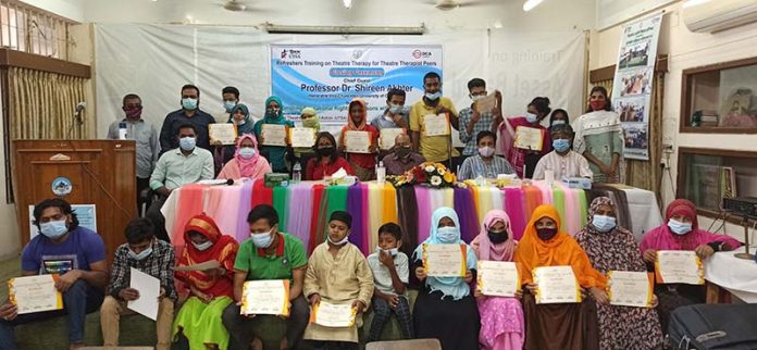 নগরীর কারিতাস ট্রেনিং সেন্টারে গত ১৭ জুন ড্যানচার্চএইড’এর সহযোগিতায় এবং উৎস কর্তৃক বাস্তবায়িত ‘প্রমোটিং এডুকেশনাল রাইটস অব পারসন্স উইথ ডিজেবিলিটিস’ প্রকল্পের আওতায় থিয়েটার থেরাপিস্ট পেয়ারস সদস্যদের থিয়েটার থেরাপির প্রয়োগ বিষয়ক দুই দিনব্যাপী রিফ্রেসার্স প্রশিক্ষণ শেষে এক সমাপনী অনুষ্ঠানের মাধ্যমে প্রশিক্ষণার্থীদের সনদ বিতরণ করা হয়েছে। উৎস এর সভাপতি শিক্ষাবিদ কাজী মোস্তাইন বিল্লাহ’র সভাপতিত্বে বিশেষ অতিথি হিসেবে উপস্থিত ছিলেন কাজী শাহীন আক্তার। আরও উপস্থিত ছিলেন উৎস এর নির্বাহী পরিচালক মোস্তফা কামাল যাত্রা, মোহাম্মদ শাহ আলম প্রমুখ। ড্যানচার্চএইড’এর সহযোগিতায় উৎস কর্তৃক বাস্তবায়িত চট্টগ্রাম নগরীতে চলমান প্রকল্পের কর্মসূচি হিসেবে আয়োজিত এই রিফ্রেসার্স ট্রেনিংয়ে অংশগ্রহণকারী ২০ জন থিয়েটার থেরাপিস্ট প্রতিবন্ধী শিক্ষার্থীদের মানসিক স্বাস্থ্য সুরক্ষায় থিয়েটার থেরাপি সেশন শেষে সমাপনী এ অনুষ্ঠানে প্রকল্পের প্রোগ্রাম অফিসার সাফিয়া বেগমের সঞ্চালনায় স্বাগত বক্তব্য রাখেন প্রকল্পের সমন্বয়কারী বিভাস কুমার। প্রশিক্ষণের সমাপনী অনুষ্ঠানের বিশেষ অতিথি কাজী শাহীন আক্তার প্রতিবন্ধী শিক্ষার্থীদের মানসিক স্বাস্থ্য সুরক্ষায় এ জাতীয় প্রশিক্ষণের গুরুত্ব এবং যৌক্তিকতা তুলে ধরতে গিয়ে বলেন, মানসিক স্বাস্থ্যসেবা কর্মীদের মনোস্বাস্থ্য সুরক্ষার বিষয়কে গুরুত্ব দিয়ে কর্মপরিকল্পনা করা প্রয়োজন। সমাপনী অনুষ্ঠানের আলোচনা শেষে প্রশিক্ষণার্থী ২০ জন থিয়েটার থেরাপিস্ট প্রতিবন্ধী শিক্ষার্থীকে সনদ প্রদান করা হয়।