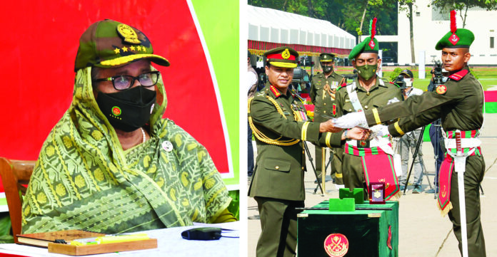 তিনি বলেন, ‘শপথ গ্রহণের মধ্য দিয়ে তোমরা নবীন ক্যাডেটদের হাতে দায়িত্ব পড়ল, যে তোমরা দেশমাতৃকার মহান স্বাধীনতা ও সার্বভৌমত্ব রক্ষা করবে। এ দায়িত্ব পালনে সব সময় সজাগ থাকতে হবে, প্রস্তুত থাকতে হবে। সর্বোচ্চ ত্যাগের বিনিময়ে হলেও দেশের স্বাধীনতা ও সার্বভৌমত্ব রক্ষা করাই হবে তোমাদের একমাত্র পেশাগত ব্রত।’ সাথে সাথে এদেশের সন্তান হিসেবে এদেশের মানুষের পাশে থাকতে হবে উল্লেখ করে প্রধানমন্ত্রী শেখ হাসিনা বলেন, জনগণের সকল প্রয়োজনে তোমাদের দায়িত্ব পালন করতে হবে। সশস্ত্র বাহিনীর সদস্যদের যে কোনো দুর্যোগ ও দুঃসময়ে বিপন্ন মানুষের পাশে দাঁড়ানোর আহ্বানও জানিয়েছেন তিনি।