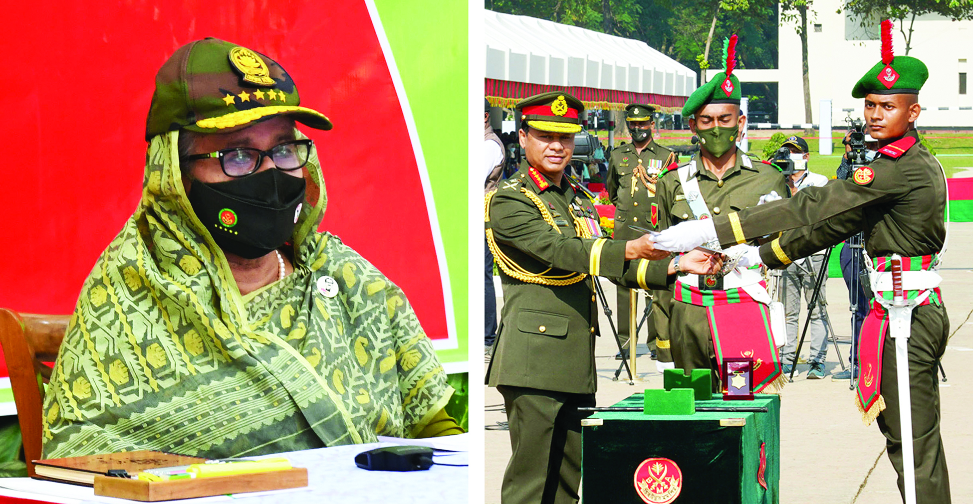 সশস্ত্র বাহিনীর সদস্যদের স্বাধীনতা ও সার্বভৌমত্ব রক্ষার জন্য ‘সদা প্রস্তুত’ থাকার পাশপাশি সাধারণ মানুষের সুখ-দুঃখ ও হাসি-কান্নার ‘সমান অংশীদার’ হওয়ার আহ্বান জানিয়েছেন প্রধানমন্ত্রী শেখ হাসিনা। তিনি গতকাল (রোববার) ভাটিয়ারিতে বাংলাদেশ মিলিটারি একাডেমির (বিএমএ) ৮১তম বিএমএ দীর্ঘমেয়াদী কোর্সের সমাপনীতে রাষ্ট্রপতি প্যারেড অনুষ্ঠানে প্রধান অতিথি হিসেবে ভাষণ দিচ্ছিলেন। প্রধানমন্ত্রী গণভবন থেকে ভিডিও কনফারেন্সের মাধ্যমে বিএমএর অনুষ্ঠানে যুক্ত হয়ে উপরোক্ত আহ্বান জানান।