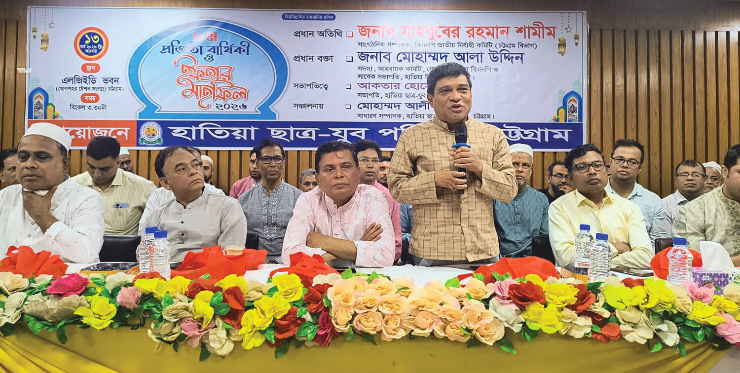 গত ১৩ মার্চ ষোলশহর এলজিইডি ভবনের কনফারেন্স রুমে চট্টগ্রামস্থ হাতিয়া ছাত্রযুব পরিষদের উদ্যোগে আয়োজিত ইফতার মাহফিলে প্রধান অতিথির বক্তব্যে তিনি এসব কথা বলেন। চট্টগ্রামস্থ হাতিয়া ছাত্রযুব পরিষদের সভাপতি আকতার হোসনের সভাপতিত্বে ও সাধারণ সম্পাদক মোহাম্মদ আলীর পরিচালনায় হাতিয়া উপজেলা বিএনপির সাবেক সভাপতি মোহাম্মদ আলাউদ্দিন। উপস্থিত ছিলেন, মহিউদ্দিন এফসিএমএ, কমার্স কলেজের উপাধ্যক্ষ ফখরুল মাওলা, বিএনপি নেতা আশরাফুল ইসলাম, সমাজসেবা অধিদপ্তরের সহকারী পরিচালক মুহাম্মদ আবুল কাশেম, অ্যাডভোকেট আকতার হোসেন, অ্যাডভোকেট মাহবুবুল ইসলাম, আতাউর রহমান ফরহাদ, বিএনপি নেতা মেহেদী হাসান ফাইজার, জিয়াউর রহমান, সাব্বির আহমেদ, প্রভাষক আলতাফ হোসেন, ওলী উল্লাহ, সাইফুল্লাহ মুনির, ফজলুল আজিম সাকিল প্রমুখ। প্রেস বিজ্ঞপ্তি।