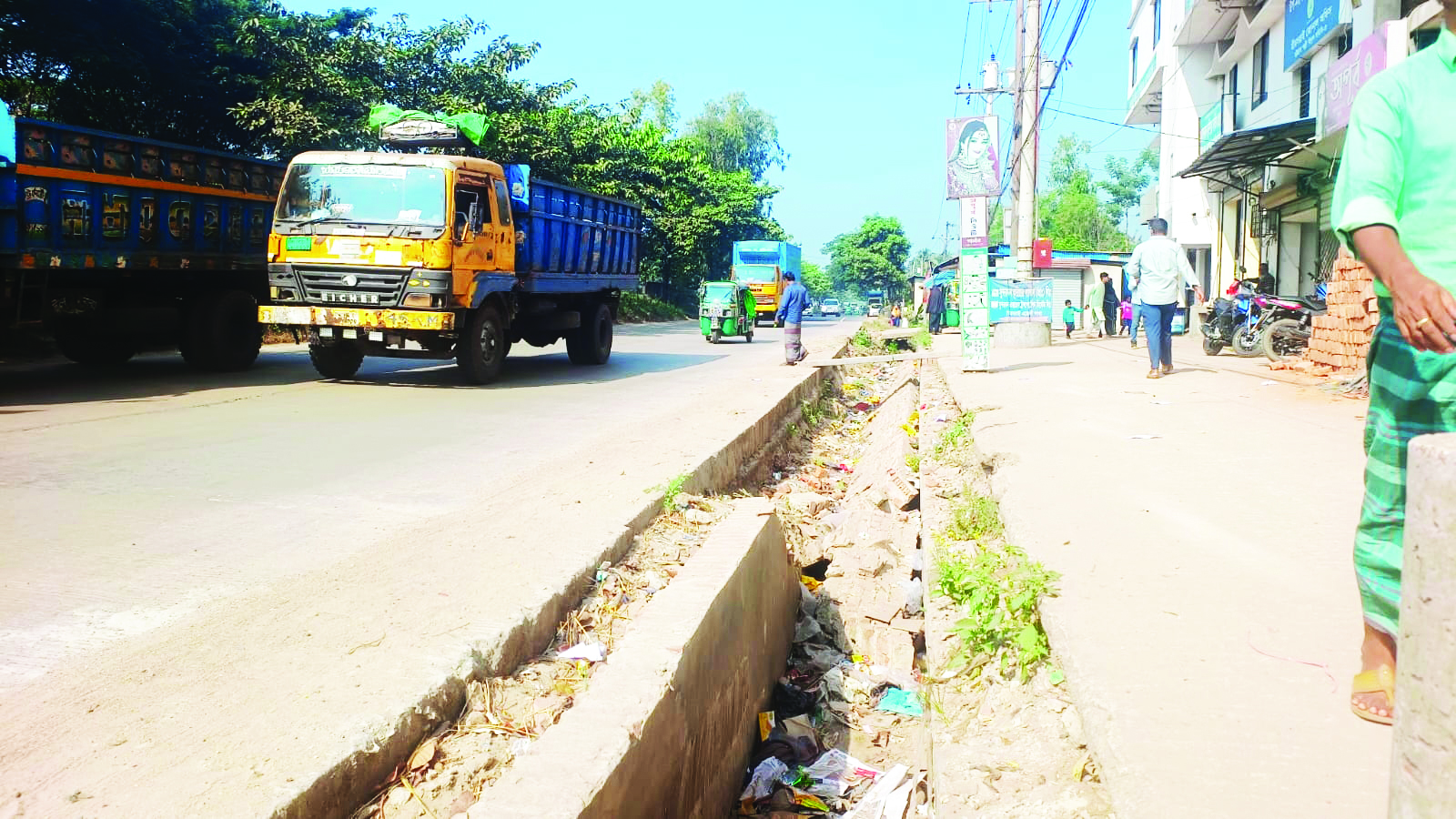 ভুক্তভোগীরা জানান, মহাসড়কের পূর্বপাশে চট্টগ্রামমুখী লেনে প্রায় ১ বছর আগে গ্যাস পাইপ লাইন বসাতে গিয়ে পথচারী চলাচলের স্ল্যাবগুলো উল্টে পথ ও নিচে ড্রেনেজ ব্যবস্থা সব খুঁড়ে একাকার করে ফেলে। এরপর তারা কোনোভাবে স্ল্যাবগুলো বসিয়ে চলে যায়। এর দুমাসের মধ্যে বৃষ্টিপাত শুরু হলে ফুটপাত ধসে পড়ে অন্তত প্রায় ৪০০ গজ এলাকা। দিনে দিনে অবশিষ্ট ভালো স্থানটুকুও ধসে ধসে পড়ছে। এতে পথচারীরা দুর্ঘটনার শিকার হওয়াসহ জনদুর্ভোগ বেড়েই চলেছে। সাধারণ মানুষের চলাচলে বাড়ছে প্রাণের ঝুঁকি।