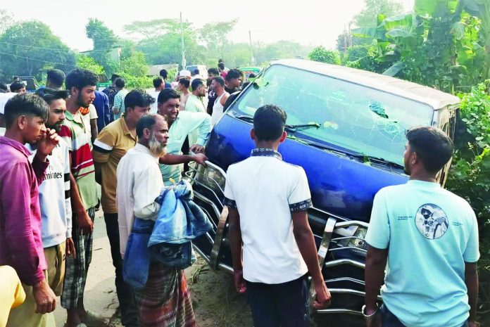 প্রত্যক্ষদর্শী হামিদুল ইসলাম বলেন, আমি রাস্তার পাশে দাঁড়িয়ে ছিলাম। দুটি মাইক্রোবাস একসঙ্গে আসছিল। হঠাৎ কালো রঙের মাইক্রোবাসটি সড়কের পাশে নামিয়ে দেয় চালক এবং সঙ্গে সঙ্গে লাফ দিয়ে নেমে যায়। গাড়িটির গতি খুব বেশি ছিল।