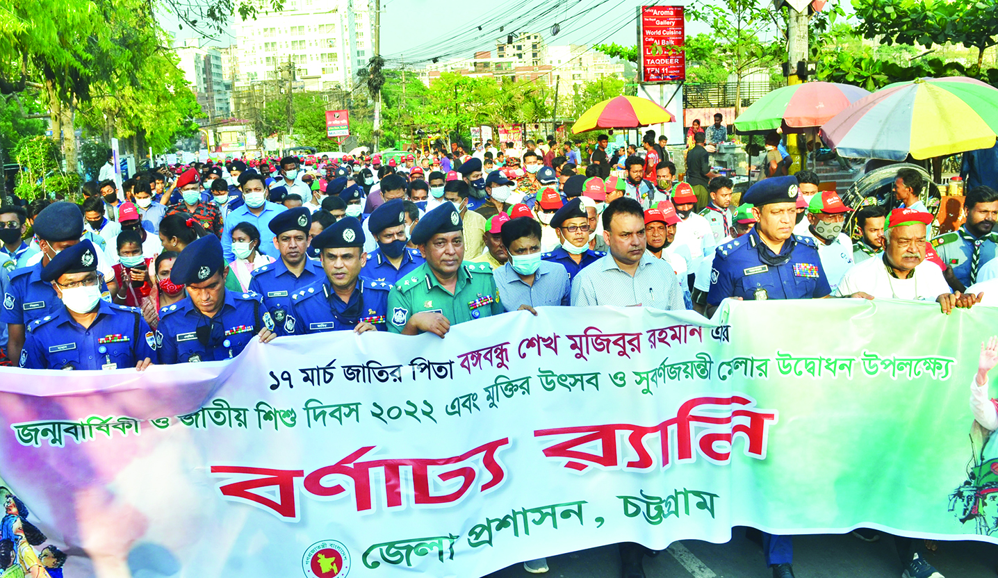 বঙ্গবন্ধু শেখ মুজিবুর রহমানের ১০২ তম জন্মদিন ও জাতীয় শিশু দিবস উদযাপন করেছে চট্টগ্রাম জেলা প্রশাসন। গতকাল সূর্যোদয়ের সাথে সাথে জেলা প্রশাসন কার্যালয় প্রাঙ্গণে ৩১ বার তোপধ্বনির মাধ্যমে শুরু হয় আয়োজন। সকল সরকারি, আধা সরকারি, স্বায়ত্তশাসিত প্রতিষ্ঠান ও বেসরকারি ভবনে উত্তোলন করা হয় জাতীয় পতাকা। মাধ্যমিক বিদ্যালয়ের ছাত্র-ছাত্রীদের মধ্যে বঙ্গবন্ধুর জীবনীর উপর রচনা ও ৭ই মার্চের ভাষণের উপর প্রতিযোগিতাসহ জেলা শিল্পকলা একাডেমি ও জেলা শিশু একাডেমিতে হয় চিত্রাঙ্কন, হাতের লেখা, নৃত্য ও বঙ্গবন্ধুকে নিয়ে গানের প্রতিযোগিতা। সকাল ৯টায় জেলা শিল্পকলা একাডেমিতে বঙ্গবন্ধুর প্রতিকৃতিতে পুষ্পস্তবক অপর্ণ এবং সাড়ে ৯ টায় কেক কাটা হয়। এছাড়া বিকাল সাড়ে ৪ টায় সার্কিট হাউস থেকে এম এ আজিজ স্টেডিয়াম সংলগ্ন জিমনেশিয়াম মাঠ পর্যন্ত র্যালি বের করা হয়। এরপর বিকাল ৫ টায় এম এ আজিজ স্টেডিয়াম সংলগ্ন মাঠে আলোচনা সভা ও সাংস্কৃতিক অনুষ্ঠানও আয়োজন হয়।