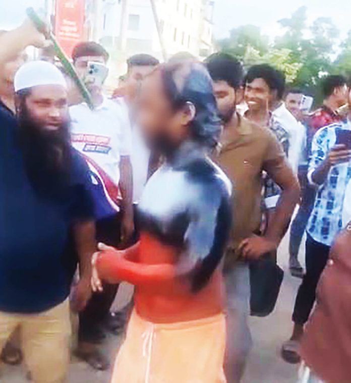 মোবাইল চুরির অভিযোগে হোটেল বয়কে আলকাতরা ও মাথা ন্যাড়া করে ঘুরানো হলো সড়কে
