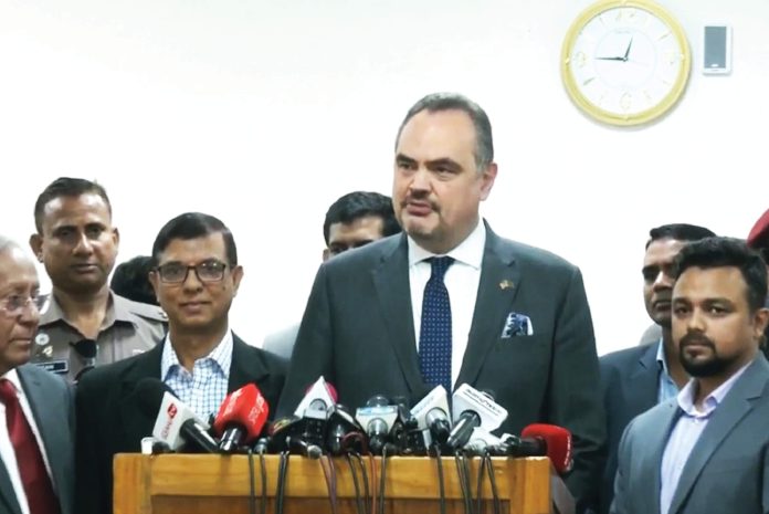 পোস্টাল ব্যালট ও আচরণবিধি নিয়ে আগ্রহ : ইসি সচিব আখতার আহমেদ বলেন, সংসদ ও গণভোটের সার্বিক ব্যবস্থাপনা সম্পর্কে জেনেছেন মার্কিন রাষ্ট্রদূত ও প্রতিনিধি দল। বিশেষ করে পোস্টাল ব্যালট নিয়ে আগ্রহ ছিল বেশি। কীভাবে পোস্টাল ব্যালট আসছে, গণনা কীভাবে হবে–সার্বিক বিষয়ে তারা জেনেছেন। আমরা পোস্টাল ব্যালটের নমুনা নিয়ে সব দেখিয়েছি। কীভাবে ভোট কাউন্ট করা হবে, কোথায় আসবে, রেফারেন্ডামের ব্যালটের সাথে গণনার সময়সীমা কত, ইত্যাদি ইত্যাদি বিষয়, যেগুলো জানতে চেয়েছেন তিনি। উনারা বলেছেন, ‘এটা বেশি জটিল ও কষ্টসাধ্য বাপার; গুডলাক’।