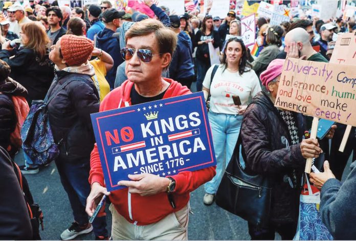 মার্কিন প্রেসিডেন্ট ডোনাল্ড ট্রাম্পের ‘কর্তৃত্ববাদী প্রবণতা ও লাগামছাড়া দুর্নীতির’ প্রতিবাদে যুক্তরাষ্ট্রজুড়ে ‘নো কিংস’ বা ‘রাজা মানি না’ সমাবেশগুলোতে অংশ নিতে বিভিন্ন বয়সী লাখ লাখ মানুষকে রাস্তায় নেমে আসতে দেখা গেছে। গত শনিবার যুক্তরাষ্ট্রের ছোট বড় বিভিন্ন শহর ও মফস্বলে এরকম দুই হাজার ৬০০ সমাবেশ হওয়ার কথা বলে আয়োজকরা জানিয়েছেন। জানুয়ারিতে ক্ষমতা নেওয়ার পর ট্রাম্পের নেওয়া বিভিন্ন পদক্ষেপ যে গতিতে গণতান্ত্রিক চর্চাকে এফোঁড়–ওফোঁড় করছে এবং সরকারের আদল বদলে দিচ্ছে তার প্রতিবাদ জানাতে এ কর্মসূচি ডাকা হয়েছে; যুক্তরাষ্ট্রজুড়ে এসব বিক্ষোভ সমাবেশে ২০ থেকে ৩০ লাখ বা তারও বেশি মানুষ যুক্ত হবে বলে আয়োজকরা আশা করছেন। খবর বিডিনিউজের।