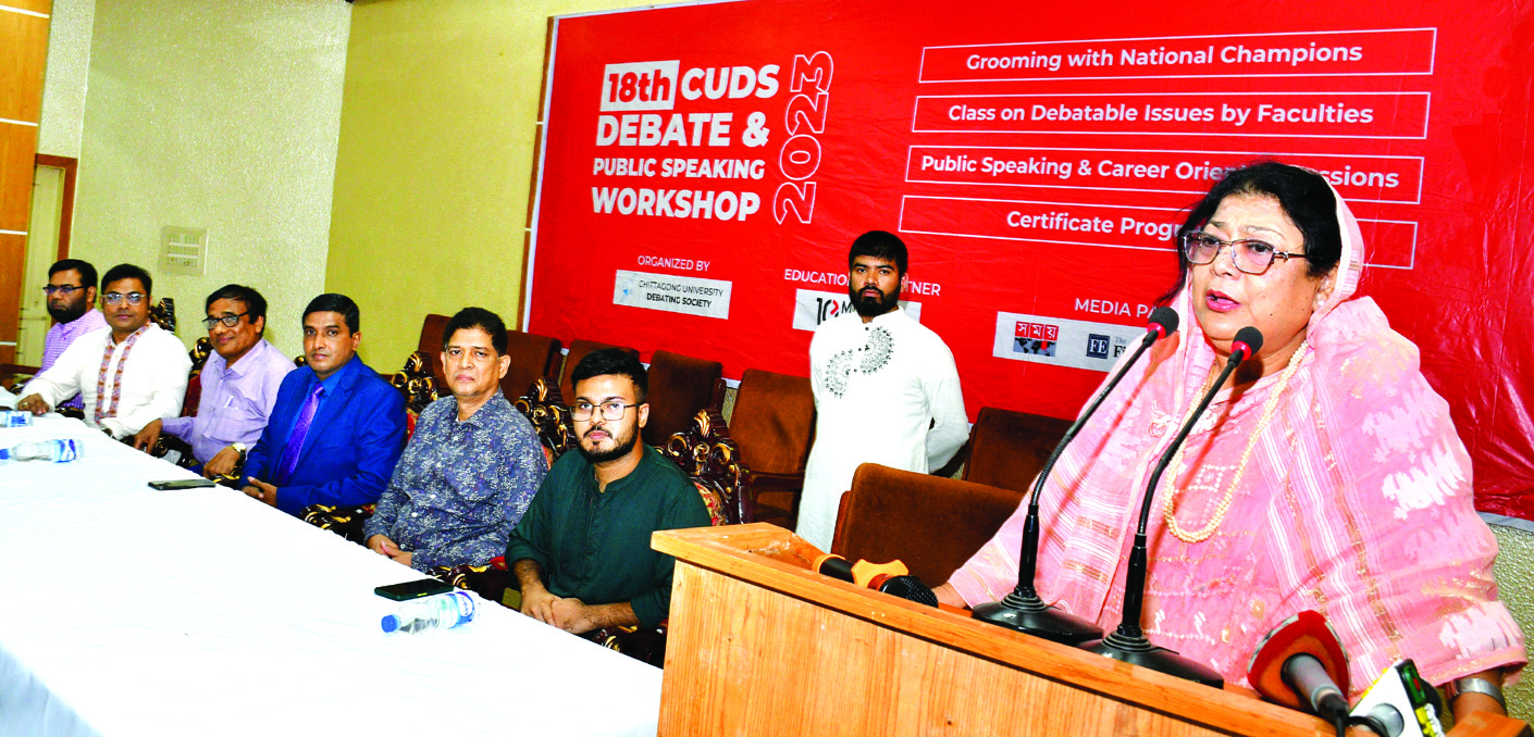 চিটাগং ইউনিভার্সিটি ডিবেটিং সোসাইটির (সিইউডিএস) ১৮তম বিতর্ক এবং পাবলিক স্পিকিং কর্মশালার সমাপনী ও সনদ বিতরণী অনুষ্ঠান গতকাল বুধবার চবি ব্যবসায় প্রশাসন অনুষদ মিলনায়তনে সিইউডিএস এর মডারেটর চবি আইন বিভাগের প্রফেসর এ বি এম আবু নোমানের সভাপতিত্বে অনুষ্ঠিত হয়। অনুষ্ঠানে প্রধান অতিথি ছিলেন চট্টগ্রাম বিশ^বিদ্যালয়ের উপাচার্য প্রফেসর ড. শিরীণ আখতার। বিশেষ অতিথি ছিলেন চবি উপ-উপাচার্য (একাডেমিক) প্রফেসর বেনু কুমার দে। আমন্ত্রিত অতিথি ছিলেন চবি শিক্ষক সমিতির সাধারণ সম্পাদক প্রফেসর আবদুল হক, বাংলাদেশ টেলিভিশন চট্টগ্রাম কেন্দ্রের জেনারেল ম্যানেজার নুর আনোয়ার হোসেন ও আবুল খায়ের গ্রæপের জেনারেল ম্যানেজার এ এন এম ওয়াজেদ আলী।