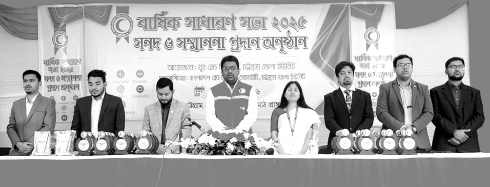 সভাপতির বক্তব্যে যুব প্রধান কৃষ্ণ দাশ বলেন, গত এক বছরে যুব রেড ক্রিসেন্ট চট্টগ্রাম জেলা ইউনিট মানবিক সেবা, দুর্যোগ মোকাবিলা, স্বাস্থ্য সচেতনতা ও যুব নেতৃত্ব উন্নয়নে যে সকল কার্যক্রম পরিচালনা করেছে, তা সকলের সম্মিলিত প্রচেষ্টার ফল। স্বেচ্ছাসেবকদের নিষ্ঠা, আন্তরিকতা ও দায়িত্ববোধের কারণেই এসব অর্জন সম্ভব হয়েছে। তিনি বলেন, আজ যাঁরা সম্মাননা পেয়েছেন তাঁরা সকলের জন্য অনুপ্রেরণা। পাশাপাশি যাঁরা নীরবে নিরলসভাবে কাজ করে গেছেন, তাঁদের অবদানও সমানভাবে গুরুত্বপূর্ণ। প্রেস বিজ্ঞপ্তি।