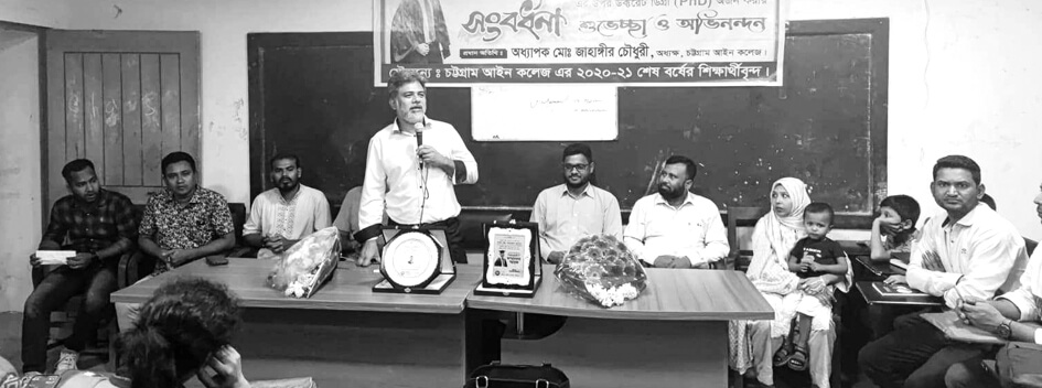 চট্টগ্রাম আইন কলেজ ফাইনাল ইয়ারের (২০২০–২১ শিক্ষাবর্ষ) উদ্যোগে সম্প্রতি একটি আনন্দ সন্ধ্যা উদযাপিত হয়েছে। দ্বিতীয় বর্ষের ছাত্র পুলিশ কর্মকর্তা আনোয়ার হোসেনের পিএইচডি ডিগ্রি অর্জন উপলক্ষে এটি আয়োজিত হয়। এতে প্রধান অতিথি হিসেবে উপস্থিত ছিলেন কলেজের উপাধ্যক্ষ এডভোকেট বদরুল হুদা মামুন। বিশেষ অতিথি ছিলেন এডভোকেট মো. আরিফ উদ্দিন।