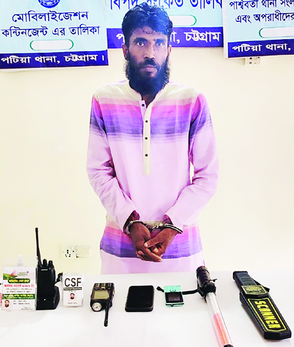 গ্রেপ্তারের পর তার ছবি সম্বলিত আইডি কার্ড (যাতে ইংরেজিতে লেখা রয়েছে ‘সিএসএফ চেয়ারপার্সন সিকিউরিটি ফোর্স, কার্ড নং–০১৩), ১টি হ্যান্ড মেটাল ডিটেক্টর, একটি চার্জারসহ ওয়াকিটকি হ্যান্ডসেট, ১টি কালো হাতল বিশিষ্ট সিগন্যাল লাইট, আসামির ছবি সম্বলিত ১টি মনিটরিং সেল কার্ড, ১টি ওয়াকিটকি সাদৃশ্য মোবাইল ফোন ও ১টি আইটেল বাটন মোবাইল সেট জব্দ করা হয়।