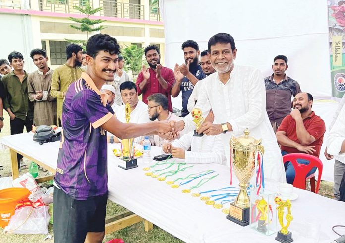 রাউজান প্রতিনিধি : রাউজানের নোয়াজিশপুর আগুয়ান ক্লাব আয়োজিত আবদুল অদুদ চৌধুরী স্মৃতি আন্তঃ ফুটবল টুর্নামেন্টের ফাইনাল খেলা অনুষ্ঠিত হয়েছে। গত ১৭ এপ্রিল শুক্রবার ফাইনাল খেলায় নোয়াজিশপুর ইউনাইটেড টাইব্রেকারে ৩–১ গোলে নোয়াজিশপুর স্ট্রাইকারর্সকে হারিয়ে চ্যাম্পিয়ন ট্রফি লাভ করে। পুরস্কার বিতরণী অনুষ্ঠানে প্রধান অতিথি ছিলেন রাউজান উপজেলা বিএনপির আহ্বায়ক নোয়াজিষপুর ইউনিয়নের সাবেক চেয়ারম্যান নুরুল হুদা। খেলার উদ্বোধক ছিলেন স্বপ্নবাড়ী প্রপার্টিজের ব্যবস্থাপনা পরিচালক রাশেদুল আলম ওয়াহেদি। অনুষ্ঠানে সভাপতিত্ব করেন আগুয়ান ক্লাবের সভাপতি আবদু সবুর। বিশেষ অতিথির বক্তব্য রাখেন কুমিরা আবাসিক উচ্চ বিদ্যালয়ের সাবেক প্রধান শিক্ষক শেখ মোহাম্মদ আজম, ব্যাংকার কাজী মঈনুদ্দিন, সেলিম উদ্দিন, নৌ বাহিনী কর্মকর্তা কাজী কামাল উদ্দীন।