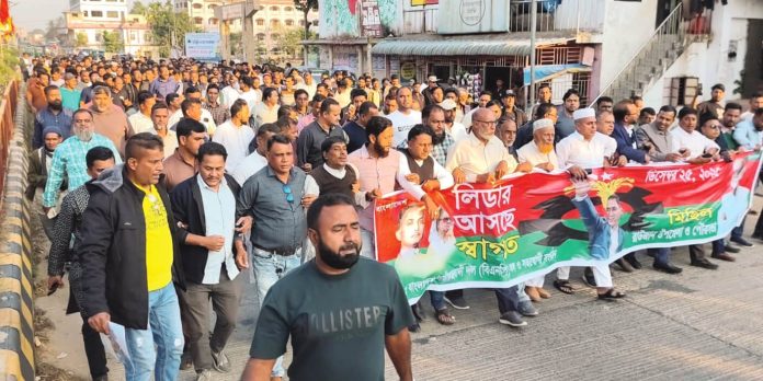 বিএনপির ভারপ্রাপ্ত চেয়ারম্যান তারেক রহমানের স্বদেশ প্রত্যাবর্তন উপলক্ষে রাউজান উপজেলা ও পৌরসভা বিএনপির উদ্যোগে স্বাগত মিছিল করা হয়েছে। সোমবার (২২ ডিসেম্বর) বিকালে রাউজান পৌর সদর মুন্সিরঘাটাস্থ দলীয় কার্যালয়ের সামনে থেকে স্বাগত মিছিল বের করা হয়। মাস্টার দা সূর্যসেন চত্বর ঘুরে পুনরায় দলীয় কার্যালয়ের সামনে গিয়ে শেষ হয়। সেখানে এক সমাবেশে সভাপতিত্ব করেন চট্টগ্রাম উত্তর জেলা যুবদলের সহ–সভাপতি সাবের সুলতান কাজল। প্রধান অতিথির বক্তব্য রাখেন চট্টগ্রাম উত্তর জেলা বিএনপির কার্যনির্বাহী সদস্য আবু জাফর চৌধুরী। এসময় চট্টগ্রাম উত্তর জেলা, উপজেলা ও পৌরসভা বিএনপি, যুবদল, স্বেচ্ছাসেবক দল, ছাত্রদলের নেতৃবৃন্দ উপস্থিত ছিলেন। মিছিলে রাউজান পৌরসভা ও উপজেলার বিভিন্ন ইউনিয়নের নেতাকর্মী অংশগ্রহণ করেন।