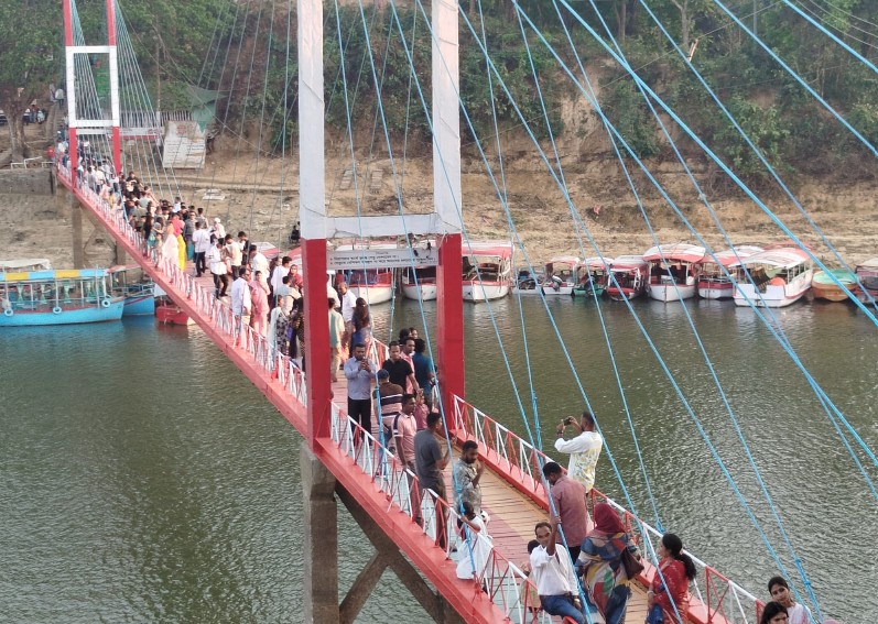 পর্যটন ঝুলন্ত সেতুর টিকেট কাউন্টারের ব্যবস্থাপক মো. সোহেল জানান, রোববার সকাল থেকে বিকেল পর্যন্ত প্রায় ৪ হাজার পর্যটক টিকেট কেটে পর্যটন ঝুলন্ত সেতুতে প্রবেশ করেছেন।