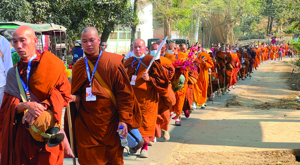 পদযাত্রাটি রাঙামাটির মানিকছড়ি, কুতুকছড়ি, মাইসছড়ি, মহালছড়ি ও মাইসছড়ির দুতকৃপ্যা ঘুরে সকাল ১১টায় খাগড়াছড়ি সদরের নিউজিল্যান্ড এলাকায় পৌঁছায়। সেখানে পিন্ডদান (খাবার গ্রহণ) শেষে ভান্তেরা ধর্মপুর আর্য বন বিহারে যাত্রা করেন। রাঙামাটির রাজবন বিহারের জিনপ্রিয় মহাস্থবির ভান্তের নেতৃত্বে এই পদযাত্রায় দেশ–বিদেশের ২০০ জন ভিক্ষু অংশ নেন।