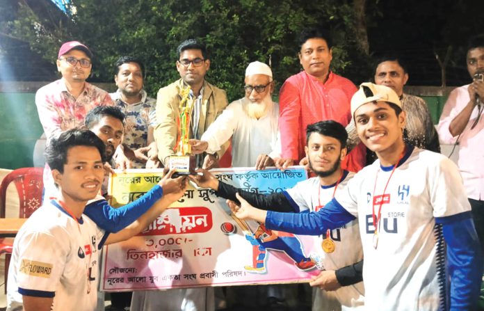 রাঙ্গুনিয়া আলো যুব একতা সংঘ আয়োজিত নূরের আলো সুপার লিগ ক্রিকেট টুর্নামেন্টের ফাইনাল খেলা ও পুরস্কার বিতরণ করা হয়েছে। গত শুক্রবার রাতে রাঙ্গুনিয়া থানা সংলগ্ন মাঠে আয়োজিত টুর্নামেন্টের ফাইনালে সৈয়দবাড়ি ভাইকিংস ৭৬ রানে হঠাৎ ক্রিকেট একাদশকে পরাজিত করে। টুর্নামেন্টে ৮ টি দল অংশগ্রহন করে। খেলায় ম্যান অব দ্যা টুর্নামেন্ট ও ম্যান অব দ্যা ম্যাচ নির্বাচিত হন চ্যাম্পিয়ন দলের তামিমুল ইসলাম তামিম। টুর্নামেন্টে সেরা দর্শকের পুরষ্কার পান মো. আনোয়ার ইসলাম। বিজয়ীদের মাঝে পুরস্কার তুলে দেন উপজেলা যুব উন্নয়ন কর্মকর্তা মো. মহিউদ্দিন। আলোচনা সভায় সভাপতিত্ব করেন সাংবাদিক আব্বাস হোসাইন আফতাব। সংগঠনের সভাপতি সৈয়দ মো. ফাহিমের সঞ্চালনায় বক্তব্য দেন শিক্ষক রহিম উদ্দিন সিকদার, মো. মাহাবুবুল আলম সিকদার, নাজমুল আমিন তারেক প্রমুখ।