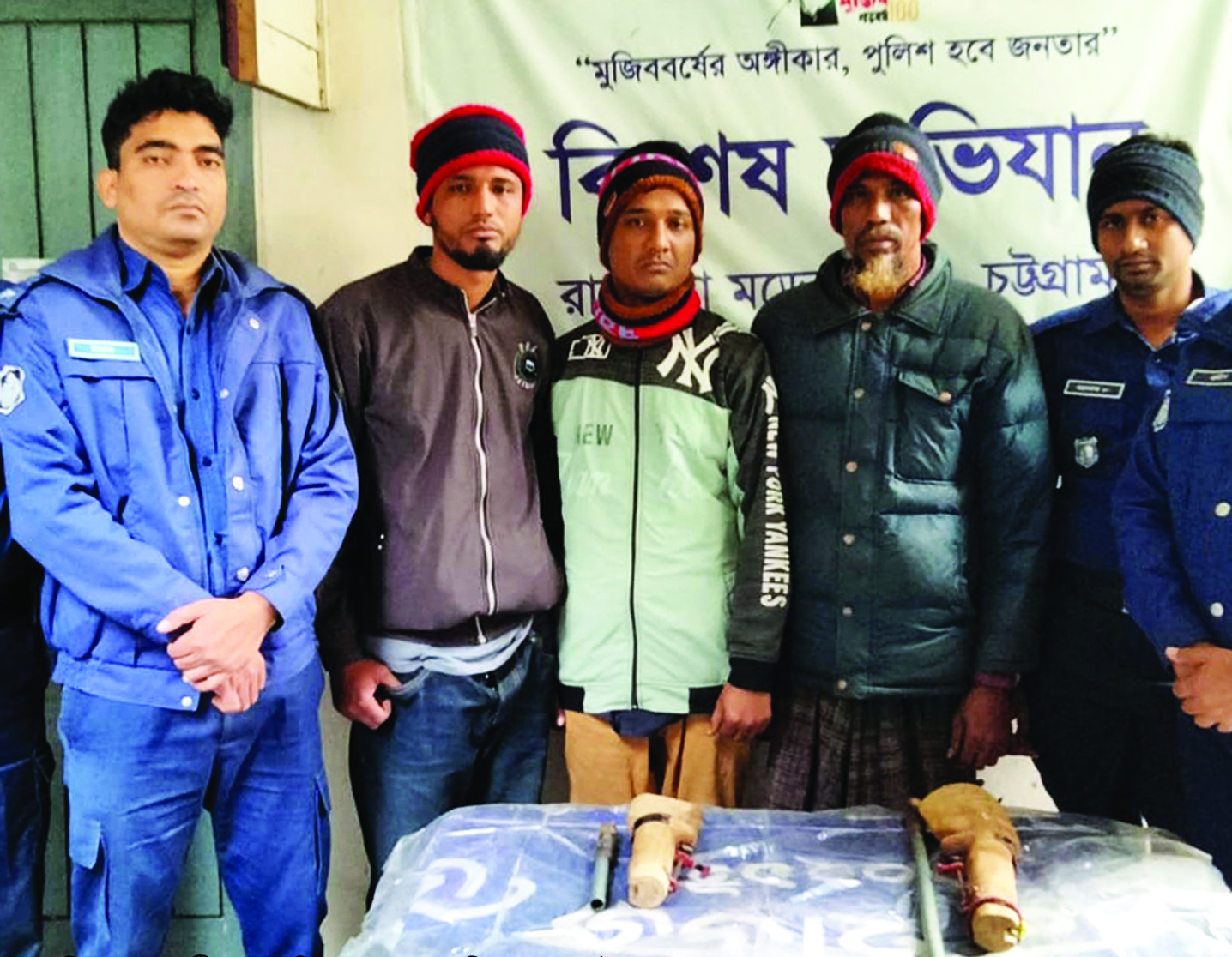 রাঙ্গুনিয়ায় দেশীয় তৈরি বন্দুকসহ পিতা ও দুই পুত্রকে গ্রেপ্তার করা হয়েছে। গতকাল রোববার ভোর সাড়ে ৪ টার দিকে উপজেলার ইসলামপুর ইউনিয়নের ১ নম্বর ওয়ার্ড, বেতছড়ি বহরাতলে তাদের নিজ বাড়ি থেকে অস্ত্রসহ গ্রেপ্তার করা হয়। গ্রেপ্তারকৃতরা হলেন মো. নাছির উদ্দিন (৫৮), ছেলে মো. রাশেদ (৩৩) ও মো. মাসুদ আলম। এই ঘটনায় রাঙ্গুনিয়া থানায় অবৈধ অস্ত্র আইনে মামলা হয়েছে।