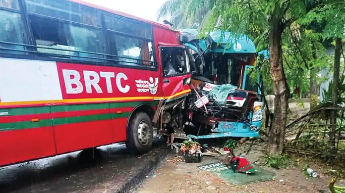 রাঙ্গুনিয়ায় দুটি বাসের মুখোমুখি সংঘর্ষে চালকসহ অন্তত ১৫ জন যাত্রী আহত হয়েছেন। গতকাল বুধবার দুপুর আড়াইটার দিকে চট্টগ্রাম-রাঙামাটি সড়কের উপজেলার রাজানগর ইউনিয়নের ৫নং ওয়ার্ড ঠান্ডাছড়ির হাকিমনগর এলাকায় এ দুর্ঘটনা ঘটে। এতে সড়কে দীর্ঘ এক ঘণ্টা যান চলাচল বন্ধ হয়ে যায়। পুলিশ ঘটনাস্থলে গিয়ে বাস দুটি সরিয়ে নিলে যান চলাচল স্বাভাবিক হয়। আহতদের চট্টগ্রাম মেডিকেলসহ আশেপাশের চিকিৎসা কেন্দ্রে নিয়ে যাওয়া হয়েছে।