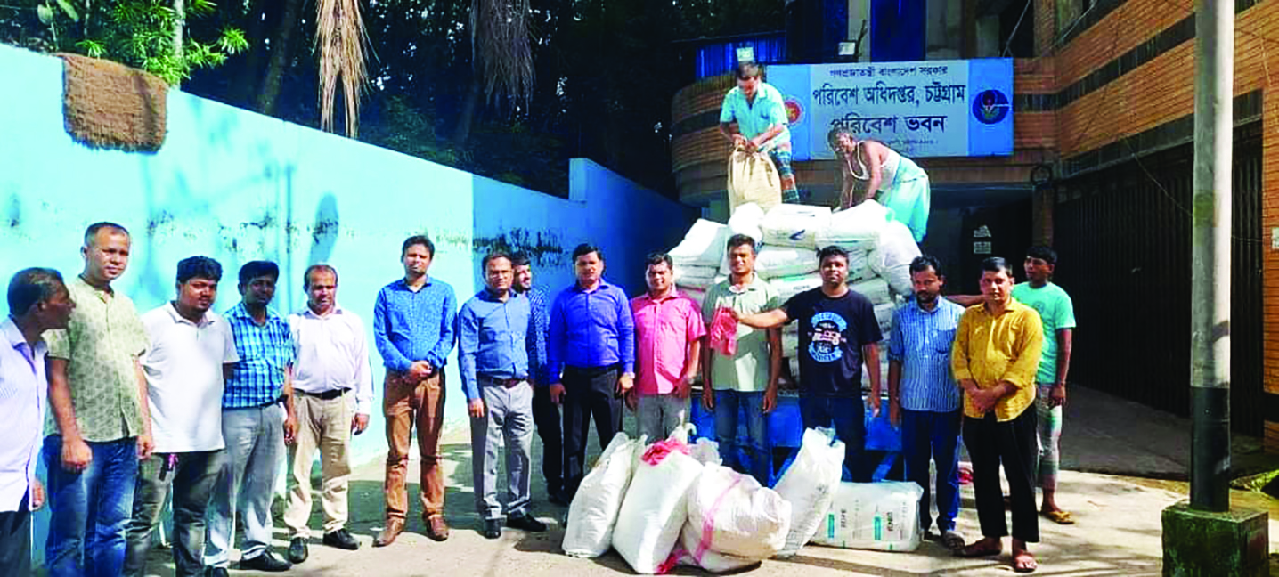 নগরীর রিয়াজুদ্দিন বাজারের চৈতন্য গলি থেকে আনুমানিক ২ হাজার ৩শ কেজি নিষিদ্ধ পলিথিন জব্দ করেছে পরিবেশ অধিদপ্তর। গতকাল বৃহস্পতিবার এক অভিযানে সংস্থাটির কর্মকর্তারা এসব জব্দ করেন। তবে কারও বিরুদ্ধে কোন ব্যবস্থা নেওয়া হয়নি। চট্টগ্রাম মহানগর কার্যালয়ের পরিচালক হিল্লোল বিশ্বাস জানান, গোপন সংবাদের ভিত্তিতে গতকাল সরকার কর্তৃক নিষিদ্ধ ঘোষিত পলিথিন বিরোধী অভিযান পরিচালনা করা হয়। এ অভিযানে নগরের রিয়াজুদ্দিন বাজার চৈতন্য গলি থেকে আনুমানিক ২৩০০ কেজি অবৈধ পলিথিন জব্দ করা হয়। অভিযানে সহকারী পরিচালক আবদুল্লাহ আলমতিন, হিসাবরক্ষণ কর্মকর্তা শাহজাদা মো. সামসুজ্জামান, পরিদর্শক মো. মনির হোসেন, সাখাওয়াত হোসাইন এবং বাংলাদেশ পুলিশ বিভাগের ৪ সদস্যের টিম অংশগ্রহণ করেন।