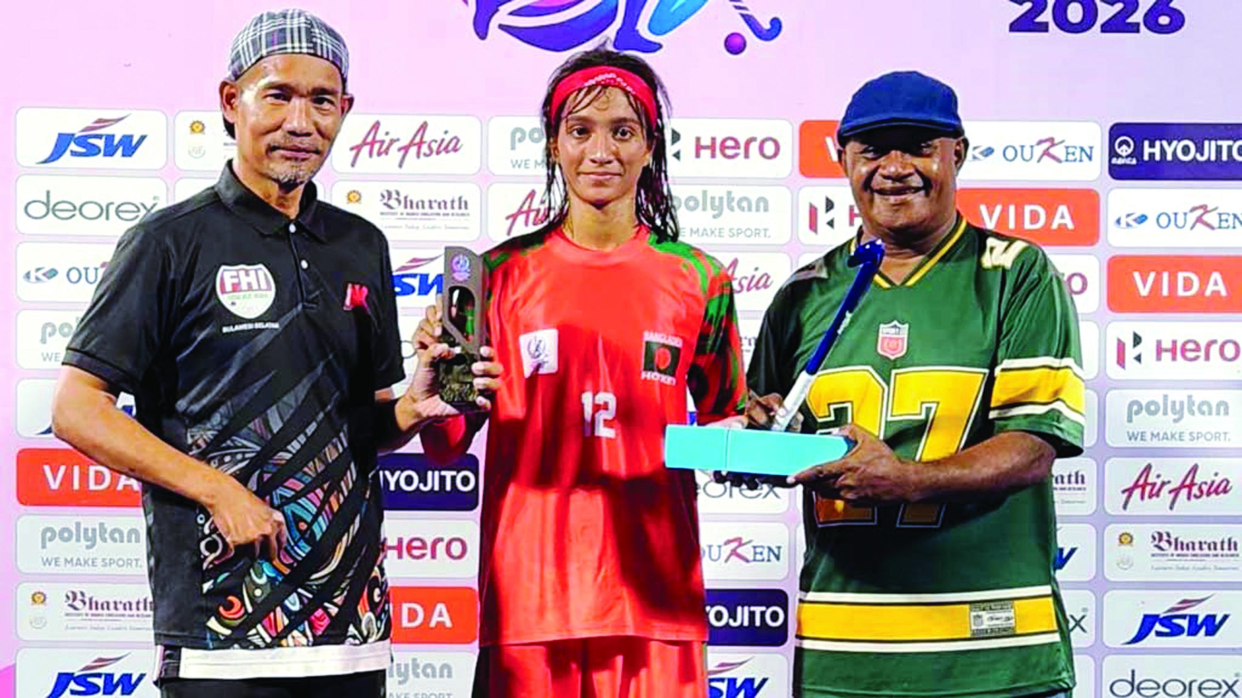 বাংলাদেশের হকিকন্যা রিয়া–অর্পিতারা রূপকথার গল্প লেখেই চলেছেন। প্রথমবারের মতো এশিয়ান গেমসের হকির বাছাই খেলতে গিয়ে একের পর এক ইতিহাস গড়ছেন তারা। দুর্দান্ত পথচলায় এবার আইরিন রিয়ার হ্যাটট্রিকে সিঙ্গাপুরকে হারিয়ে এশিয়ান গেমসের মেয়েদের হকি ইভেন্টের বাছাইয়ের ফাইনালে উঠেছে বাংলাদেশ। ইন্দোনেশিয়ার জাকার্তায় মঙ্গলবার প্রথম সেমি–ফাইনালে সিঙ্গাপুরকে ৩–১ গোলে হারায় বাংলাদেশ। চারবার এশিয়ান গেমসে খেলা সিঙ্গাপুরকে চতুর্থ ও শেষ কোয়ার্টারে চেপে ধরে দুই গোল তুলে নিয়ে জিতে যায় দল। সিঙ্গাপুরের বিপক্ষে আশা জাগানিয়া শুরু পায় বাংলাদেশ। অষ্টম মিনিটে রিয়ার হিটে এগিয়ে যায় দল। তবে প্রথম কোয়ার্টারেই এই স্বস্তি উবে যায়। দ্বাদশ মিনিটে চিয়া চেরিল পেনাল্টি কর্নার থেকে সমতা ফেরান ২০২২ এশিয়ান গেমসে সপ্তম হওয়া সিঙ্গাপুরকে। দ্বিতীয় কোয়ার্টারে কেউ পায়নি গোল। তৃতীয় কোয়ার্টারের শুরুতে সার্কেলের ভেতর থেকে ফরিদা রাত্রির হিট দূরের পোস্ট দিয়ে বেরিয়ে যায়। চতুর্থ ও শেষ কোয়ার্টারে গোলের জন্য দুই পক্ষই মরিয়া হয়ে ওঠে। নির্ধারিত সময়ে চার মিনিট বাকি থাকতে কাঙ্ক্ষিত গোলের দেখা পায় বাংলাদেশ। এক ছুটে সার্কেলের ভেতরে ঢুকে জোরাল হিটে লক্ষ্যভেদ করেন রিয়া। সিঙ্গাপুর ডিভিও রেফারেল নিলেও টিকে যায় গোল। ৫৮তম মিনিটে হ্যাটট্রিক পূরণ করেন রিয়া। সতীর্থের ক্রসে গোলমুখ থেকে নিখুঁত ফ্লিকে জাল খুঁজে নেন তিনি। বাকিটা সময় সিঙ্গাপুর পারেনি ঘুরে দাঁড়াতে। শেষের বাঁশি বাজতেই ফাইনালে ওঠার বাঁধনহারা উচ্ছ্বাসে মেতে ওঠে মেয়েরা। হ্যাটট্রিক উপহার দেওয়া আইরিন রিয়া পেয়েছেন ম্যাচের সেরা খেলোয়াড়ের পুরস্কার।