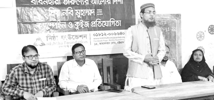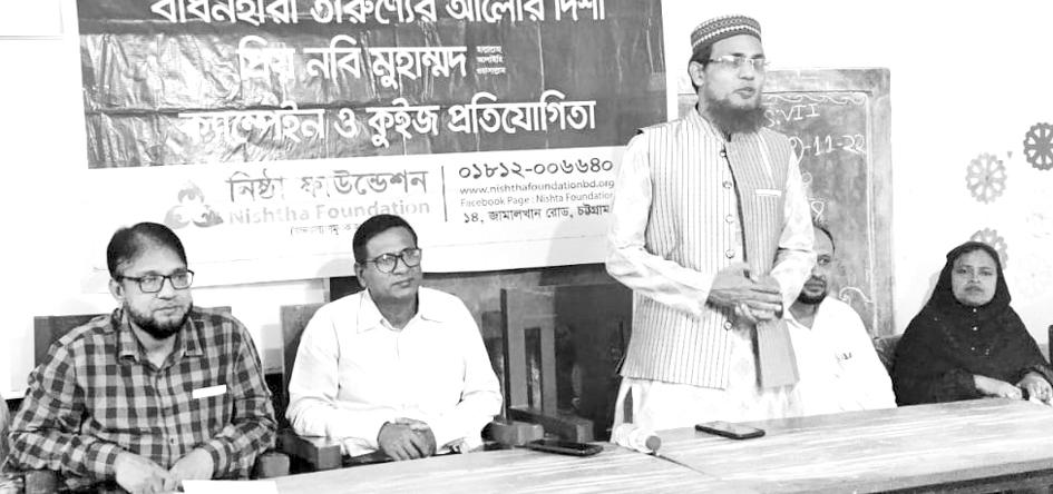 নিষ্ঠা ফাউন্ডেশনের উদ্যোগে নগরীর টাগারপাসস্থ বাংলাদেশ রেলওয়ে এমপ্লয়ীজ গার্লস হাইস্কুল হলে প্রিয় নবী মুহাম্মদ (দ.) বিষয়ক আলোচনা সভা গতকাল বৃহস্পতিবার অনুষ্ঠিত হয়। প্রধান শিক্ষক মোহাম্মদ জাকেরের সভাপতিত্বে এবং ফাউন্ডেশনের ট্রাস্টি এম এ সবুরের সঞ্চালনায় এতে মুখ্য আলোচক ছিলেন ফাউন্ডেশনের জেনারেল সেক্রেটারি অধ্যাপক ড. মুহাম্মদ নুর হোসাইন। বিশেষ অতিথি ছিলেন শিক্ষক মঈনুদ্দীন মো. নুরুল ইসলাম। মুখ্য আলোচক বলেন, আধুনিক প্রযুক্তির অপব্যবহার, সামাজিক অবক্ষয় ও বিজাতীয় অপসংস্কৃতি কারণে যুবসমাজের বড় একটি অংশ বিপথগামী হচ্ছে। কিশোর গ্যাং সহ বিভিন্ন গ্রুপে যুগ দিয়ে কম বয়সে খুনখারাবির মত অপরাধে জড়িত হয়ে যাচ্ছে। শিক্ষা খাতে বরাদ্দ বাড়লেও সুশিক্ষিত ও নৈতিকতা সম্পন্ন মানবসম্পদ তৈরি হচ্ছে না। এমন অবস্থা থেকে উত্তরনের নবী করিম (দ.) জীবনাদর্শের অনুসরণ করতে হবে। তাই নিষ্ঠা ফাউন্ডেশন উক্ত শিরোনামে স্কুল-কলেজ ক্যাম্পেইন শুরু করেছে। শেষে কুইজ প্রতিযোগিতা অনুষ্ঠিত হয়। এতে উপস্থিত ছিলেন সৈয়দা সেলিমা ইমাম, শিউলী বড়ুয়া, মাছুমা আক্তার, মোহাম্মদ মজিবুল হক, হুমায়রা আক্তার প্রমুখ। প্রেস বিজ্ঞপ্তি।