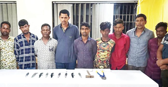 আটকরা হলেন জানে আলম সোহাগ (৪২), রতন দত্ত (৪২), মোহাম্মদ রনি (৩২), ইকবাল হোসেন (৩৫), দেলোয়ার হোসেন (২৮), সোহেল (২৩), বাদশা (২৫), কাওছার (২০) ও মিনহাজ উদ্দিন (২০)।