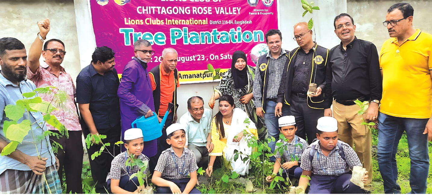 লায়ন্স ক্লাব অব চিটাগাং রোজভ্যালী ও লায়ন্স ডিস্ট্রিক্ট ৩১৫ বি৪ এর উদ্যোগে গত ২৬ আগস্ট নোয়াখালী জেলার বেগমগঞ্জ আমানতপুরে বৃক্ষরোপণ ও ৩ টি বিদ্যালয়ের ছাত্রছাত্রীদের মধ্যে বিনামূল্যে চারা বিতরণ করা হয়। দিনব্যাপি এই আয়োজনে সভাপতিত্ব করেন ক্লাব প্রেসিডেন্ট লায়ন ফারাহ বেনজীর আলম। অনুষ্ঠান সঞ্চালনা করেন লায়ন অনিমেষ রায় চৌধুরী। প্রধান অতিথি হিসেবে কর্মসূচির উদ্ধোধন করেন প্রাক্তন জেলা গভর্নর লায়ন শাহ আলম বাবুল। উপস্থিত ছিলেন লায়ন মো. ওসমান গনি, লায়ন মো. শওকত উল ইসলাম, লায়ন আবদুল গাফ্ফার চৌধুরী, লায়ন মীর্জা মো. মনসুরুল হক, লায়ন ইঞ্জিনিয়ার মোহাম্মদ আবদুল মোবিন, লায়ন আলী আশরাফ আসগরী, লায়ন আবুল মনসুর চৌধুরী, লায়ন সুলতানা রাজিয়া চৌধুরী, লায়ন শুক্কুর চৌধুরী, লায়ন ফারাজ, সাবেক ইউপি চেয়ারম্যান মোস্তফা কামাল প্রমুখ। প্রধান অতিথি এলাকায় বর্তমানে ও অতীতে চক্ষু চিকিৎসা, স্বাস্থ্য সেবা, মানবিক ত্রাণ বিতরণের বিস্তারিত কর্মকান্ড তুলে ধরে আগামীতেও সব ধরনের সাহায্য সহযোগিতা অব্যাহত রাখার প্রত্যাশা ব্যক্ত করেন। প্রেস বিজ্ঞপ্তি।