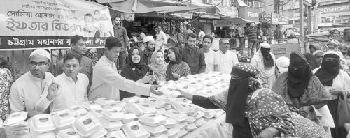 চট্টগ্রাম মহানগর যুব মহিলা লীগ : বাংলাদেশ যুব মহিলা লীগের সভাপতি ডেইজি সরোয়ারের নির্দেশনায় প্রতিদিনের ন্যায় গতকাল নগরীর জিইসির মোড়ে অসহায়, সুবিধা বঞ্চিত পাঁচ শতাধিক মানুষ মানুষের মাঝে ইফতার বিতরণ করেন চট্টগ্রাম মহানগর যুব মহিলা লীগ সিনিয়র সদস্য সোনিয়া আজাদ। তিনি বলেন, মাননীয় প্রধানমন্ত্রী জননেত্রী শেখ হাসিনা নিরলসভাবে কাজ করে যাচ্ছেন বাংলাদেশের আপামর জনসাধারণের জন্য, তারই লক্ষ্যে কোন মানুষ যেন অভুক্ত না থাকে এ ধারাবাহিকথা রক্ষার্থে প্রথম রমজান হতে প্রতিদিন চট্টগ্রাম মহানগর যুব মহিলার পক্ষ থেকে আমি পাঁচশতাধিক মানুষের মাঝে ইফতার বিতরণ করে আসছি।