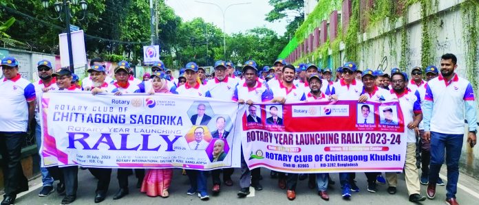 পরে এক র্যালি ইঞ্জিনিয়ার ইনস্টিটিউশন থেকে নগরীর বিভিন্ন সড়ক প্রদক্ষিণ করে। অনুষ্ঠানে বেশ কিছু সার্ভিস প্রজেক্ট উদ্বোধন ও ৫০টি নতুন গৃহ নির্মাণের কার্যক্রম উদ্বোধন, এক শত সুবিধাবঞ্চিত মানুষের মাঝে শুকনা খাবার বিতরণ করা হয়। ডিস্ট্রিক্ট গভর্নর ইঞ্জিনিয়ার মো. মতিউর রহমান বলেন, ১০টি লক্ষ্য অর্জনে ২০২৩–২৪ রোটারিবর্ষে কাজ করবে রোটরিয়ানরা। কমিউনিটি সার্ভিস বৃদ্ধি, ক্লাব সার্ভিসের আওতায় মেম্বার বাড়ানো, ফেলোশিপ বাড়ানো, ভোকেশনাল ট্রেনিং সার্ভিস এবং তরুণদের অংশগ্রহণে ইন্টারন্যাশনাল এক্সচেঞ্জ প্রোগ্রাম সহ কমিউনিটি সার্ভিস প্রজেক্টের আওতায় এই বর্ষে অন্তত একটি মেগা হেল্থ ক্যাম্প, দুঃস্থ ও গরীব কিডনী রোগীদের জন্য চট্টগ্রাম কিডনী ফাউন্ডেশনের সাথে যৌথভাবে ২৫টি ডায়ালাইসিস মেশিন স্থাপনের মাধ্যমে একটি স্থায়ী রোটারি কিডনী ডায়ালাইসিস সেন্টার প্রতিষ্ঠার পরিকল্পনা হাতে নেওয়া হয়েছে। প্রেস বিজ্ঞপ্তি।