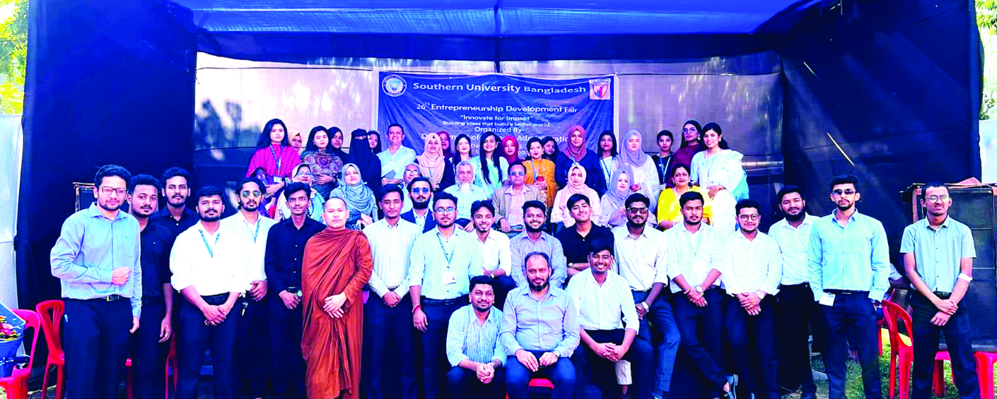‘উদ্ভাবনে নতুনত্বের ছোঁয়া’ এ প্রতিপাদ্যকে সামনে রেখে সাউদার্ন ইউনিভার্সিটিতে অনুষ্ঠিত হলো ২৬তম উদ্যোক্তা উন্নয়ন মেলা ও প্রতিযোগিতা–২০২৫। ব্যবসায় প্রশাসন বিভাগের সহকারী অধ্যাপক তাসনীম ইসলামের তত্ত্বাবধানে বিবিএ ৭১ব্যাচ ও এইচটিএম ৩৬তম ব্যাচের উদ্যোগে একাডেমিক কোর্সের অংশ হিসেবে গত মঙ্গলবার ইউনিভার্সিটির স্থায়ী ক্যাম্পাস বায়েজিদ আরেফিন নগরে দিনব্যাপী এই মেলার আয়োজন করা হয়।