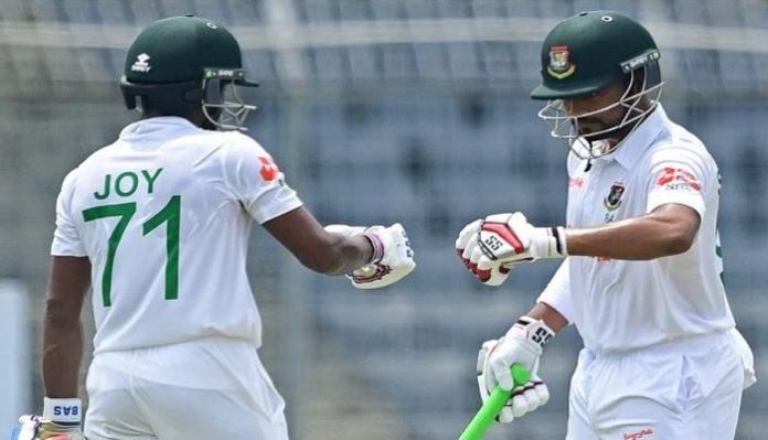 শুরুতেই উইকেট হারিয়ে এক রকম চাপে ছিল স্বাগতিক বাংলাদেশ। তবে নাজমুল হোসেন শান্ত ক্রিজে এসে সেই চাপ সরিয়ে দেন বোলারদের ওপর। মাহমুদুল হাসান জয়ের সঙ্গে গড়েন দারুণ এক জুটি।