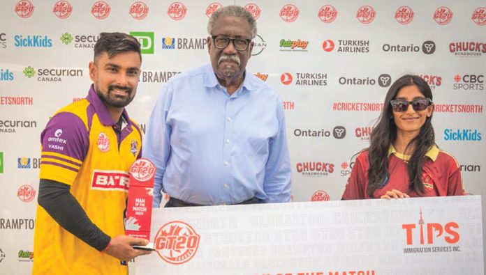 ১২৯ রানের টার্গেটে শুরুতেই চাপে পড়ে সারে। ২১ রানে ৩ উইকেট হারায় তারা। চতুর্থ উইকেটে দলের অধিনায়ক পাকিস্তানের ইফতেখার আহমেদকে নিয়ে ব্রাম্পটনের বোলারদের সামনে প্রতিরোধ গড়ে তোলেন লিটন। জুটির গড়ার চেষ্টায় সফল হন ইফতেখার ও লিটন। ১৬তম ওভারের দ্বিতীয় বলে বাউন্ডারি দিয়ে দলের রান ১শ ও ব্যক্তিগতভাবে হাফ সেঞ্চুরির স্বাদ নেন লিটন। হাফ সেঞ্চুরি পেতে ৪০ বল খেলেছেন লিটন। ১৮তম ওভারে কানাডার স্পিনার শহিদ আহমেদজাইর বলে আউট হওয়ার আগে ৩টি করে চার–ছক্কায় ৪৫ বলে ৫৯ রান করেন লিটন। লিটন যখন ফিরেন তখন ৯ রান দরকার ছিলো সারের। আয়ানকে নিয়ে বাকী কাজটুকু সারেন ইফতেখার। ১টি চার ও ২টি ছক্কায় ৪১ বলে অপরাজিত ৩৮ রান করেন ইফতেখার। ম্যাচ সেরা হন লিটন। ৬ ম্যাচে ৩ জয়ে ৮ পয়েন্ট নিয়ে টেবিলের দ্বিতীয়স্থানে উঠলো লিটনের সারে।