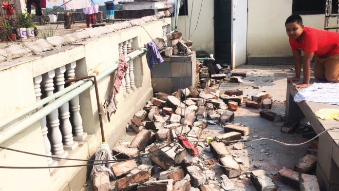 হতাহতের চিত্র : ফায়ার সার্ভিস জানিয়েছে, ঢাকার আরমানিটোলার কসাইটুলি এলাকার একটি ৮ তলা ভবনের পাশের দেয়াল এবং কার্নিশ থেকে ইট ও পলেস্তারা খসে নিচে পড়ে, যেখানে একটি গরুর মাংস বিক্রির দোকান ছিল। সেখানে থাকা ক্রেতা ও পথচারীরা আহত হন। ফায়ার সার্ভিস ঘটনাস্থলে পৌঁছানোর আগেই স্থানীয় লোকজন তাদের হাসপাতালে নিয়ে যান। হাসপাতালে নেওয়ার পর চিকিৎসকরা ৩ জনকে মৃত ঘোষণা করেন। বংশাল থানার ওসি রফিকুল ইসলাম জানিয়েছেন নিহতরা হলেন আনুমানিক ২২ বছর বয়সী রাফিউল ইসলাম, হাজী আবদুর রহিম (৪৭) ও তার ছেলে মেহরাব হোসেন রিমন (১২)।