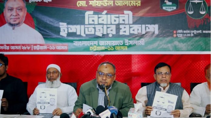 চট্টগ্রাম-১১ সংসদীয় আসনে বাংলাদেশ জামায়াতে ইসলামী মনোনীত ও ১১ দল সমর্থিত প্রার্থী জননেতা মোহাম্মদ শফিউল আলমের নির্বাচনী ইশতেহার প্রকাশ অনুষ্ঠান আজ বৃহস্পতিবার (৫ জানুয়ারি) সফলভাবে অনুষ্ঠিত হয়েছে।