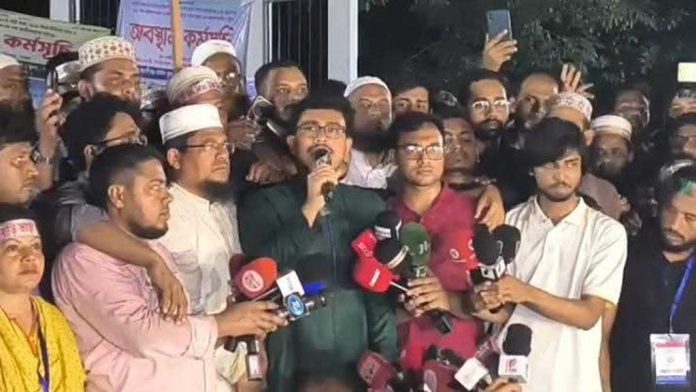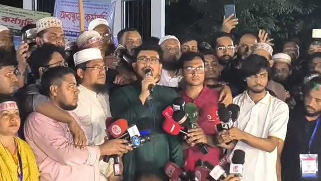 গতকাল রোববার সন্ধ্যায় কেন্দ্রীয় শহীদ মিনারে অষ্টম দিনের মতো অবস্থান কর্মসূচি থেকে আন্দোলনরত শিক্ষক সংগঠনগুলোর মোর্চা এমপিওভুক্ত শিক্ষা জাতীয়করণ প্রত্যাশী জোটের সদস্য সচিব অধ্যক্ষ দেলাওয়ার হোসেন আজিজী এ কর্মসূচি ঘোষণা করেন। তিনি বলেন, বিএনপির মহাসচিব মির্জা ফখরুল ইসলাম আলমগীরের সঙ্গে আমাদের আলোচনা হয়েছে। তিনি আমাদের বলেছেন, অর্থ উপদেষ্টার সঙ্গে আমাদের দাবি নিয়ে কথা বলবেন। আর আগামী ২২ অক্টোবর তিনি শিক্ষকদের মাঝে উপস্থিত হবেন বলে জানিয়েছেন। ডিএমপি কমিশনার আমাদের সঙ্গে যোগাযোগ করে কিছুটা সময় চেয়েছেন। আমরা সোমবার জাতীয় শহীদ মিনারে লক্ষ লক্ষ শিক্ষকদের উপস্থিতিতে শিক্ষক সমাবেশ অনুষ্ঠিত হবে। খবর বিডিনিউজের।