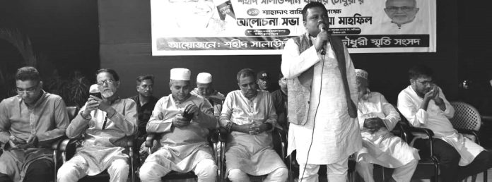 বিএনপি নেতা সালাউদ্দিন কাদের চৌধুরীকে বিচারিক হত্যার মাধ্যমে জাতীয়তাবাদি দল (বিএনপির) রাজনীতিকে ধ্বংস করতে চেয়েছিল স্বৈরাচার আওয়ামীলীগ সরকার। শোককে শক্তিতে পরিণত করে বিএনপি’র রাজনীতি আরও গতিময় হয়েছিল। সালাউদ্দিন কাদের চৌধুরী বেঁচে থাকলে ২৪এর অর্ভুত্থানের আগেই হাসিনাকে পালিয়ে যেতে হতো। সাবেক এমপি ও মন্ত্রী সালাউদ্দিন কাদের চৌধুরীর ১০ম মৃত্যুবার্ষিকী উপলক্ষে গতকাল শনিবার সন্ধ্যায় রাউজান পৌরসভার ৬নম্বর ওয়ার্ডের রাউজান ইংলিশ স্কুল প্রাঙ্গনে শহীদ সালাউদ্দিন কাদের চৌধুরী স্মৃতি সংসদ আয়োজিত আলোচনা সভা ও দোয়া মাহফিলে বক্তারা এসব কথা বলেন। আলোচনা সভা ও দোয়া মাহফিলে সভাপতিত্ব করেন চট্টগ্রাম উত্তর জেলা স্বেচ্ছাসেবক দলের সাবেক সহ–ক্রীড়া বিষয়ক সম্পাদক মোহাম্মদ আলী সুমন। প্রধান অতিথি ছিলেন চট্টগ্রাম উত্তর জেলা শিক্ষক সমিতির সাবেক সভাপতি প্রবীণ বিএনপি নেতা আবু জাফর চৌধুরী। প্রধান বক্তা ছিলেন রাউজান পৌরসভা বিএনপির সাবেক সাধারণ সম্পাদক সৈয়দ মঞ্জুরুল হক। প্রধান আলোচক ছিলেন চট্টগ্রাম উত্তর জেলা যুবদলের সহ–সভাপতি সাবের সুলতান কাজল। ওয়ার্ড বিএনপির সাধারণ সম্পাদক শহিদ চৌধুরী ও রাউজান কলেজ ছাত্রদলের সাবেক সিনিয়র সহ–সভাপতি হাসান বাহাদুরের সঞ্চালনায় অতিথি ছিলেন ওমার ফারুক, আলী আজগর চৌধুরী, আবু বক্কর সিদ্দিকী, সাইদ বিন আমান রানা, তসলিম উদ্দিন, ছোটন আজম, শাহাদাত মির্জা, রাউজান পৌরসভা যুবদলের সদস্য সচিব এম শাহজান সাহিল, আরিফুল ইসলাম, তসলিম উদ্দিন চৌধুরী, আশিকুর রহমান ফয়েজ, মোহাম্মদ হোসেন, মোহাম্মদ আজগর, শাহ নেওয়াজ, বাপ্পা কুমার দাশ। এসময় উপস্থিত ছিলেন জীবন খন্দকার, নাছির উদ্দিন, প্রবাসী মোহাম্মদ হোসেন, মোহাম্মদ ফোরকান প্রমুখ। প্রেস বিজ্ঞপ্তি।