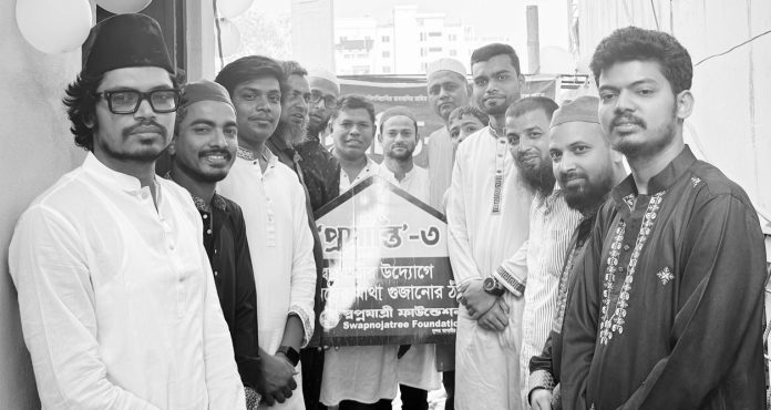 চট্টগ্রামের চান্দগাঁও এলাকায় স্বপ্নযাত্রী ফাউন্ডেশনের গৃহনির্মাণ প্রকল্প “প্রশান্তি”–এর আওতায় ‘প্রশান্তি–৩’ এর উদ্বোধন ও ঘর হস্তান্তর অনুষ্ঠান অনুষ্ঠিত হয়েছে। শমসের পাড়াস্থ এজাহার মিয়া সওদাগর বাড়িতে আয়োজিত অনুষ্ঠানে উপকারভোগী শানু বেগমের হাতে আনুষ্ঠানিকভাবে নতুন ঘর তুলে দেওয়া হয়।জানা যায়, দীর্ঘদিন নিজস্ব ঘর না থাকায় শানু বেগমকে এলাকার একজন সহৃদয় ব্যক্তির বাসায় আশ্রয় নিয়ে বসবাস করতে হচ্ছিল। মানবিক বিবেচনায় তার স্থায়ী আবাসনের ব্যবস্থা করতে এগিয়ে আসে স্বপ্নযাত্রী ফাউন্ডেশন। ঘর হস্তান্তর অনুষ্ঠানে প্রধান অতিথি হিসেবে উপস্থিত ছিলেন সংগঠনের মানবিক ডাক্তার, সহকারী অধ্যাপক ডাঃ তফিকুর নাহার মোনা। উদ্বোধক হিসেবে উপস্থিত ছিলেন সরকারি হাজী আব্দুল বাতেন কলেজের সহযোগী অধ্যাপক মোহাম্মদ ইলিয়াছ। এ সময় সংগঠনের স্বেচ্ছাসেবী জাহেদুল আলম, রুবেল মাহমুদ, জীবন মাহমুদ, রিদুয়ান হৃদয়, সাফায়েত শিহাব, জাহেদ আলম, জামান চৌধুরী, মামুনুর রশীদ, দিদার আলম, খানম হাবিব, মোঃ জাবেদ, হাসিবুল হাসানসহ অন্যান্য সদস্যরা উপস্থিত ছিলেন। অতিথিরা তাদের বক্তব্যে বলেন, সমাজের অসহায় ও সুবিধাবঞ্চিত মানুষের জন্য টেকসই সহায়তা নিশ্চিত করতে এমন উদ্যোগ অত্যন্ত প্রশংসনীয়। একটি নিরাপদ বাসস্থান একটি পরিবারের জীবনমান উন্নয়নে গুরুত্বপূর্ণ ভূমিকা রাখে। স্বপ্নযাত্রী ফাউন্ডেশন জানায়, মানবতার টানে অসহায় মানুষের পাশে দাঁড়ানোর অঙ্গীকার নিয়ে তাদের এ ধরনের কার্যক্রম ভবিষ্যতেও অব্যাহত থাকবে। প্রেস বিজ্ঞপ্তি।