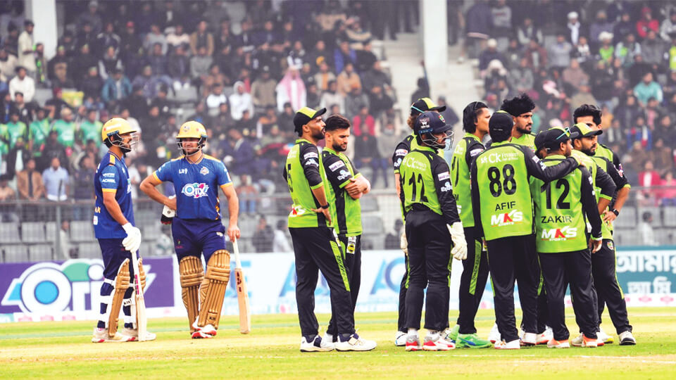 ঢাকা ক্যাপিটালসের সতীর্থরা একে একে সাজঘরের পথ ধরলেন। কিন্তু শামীম হোসেন পাটোয়ারী খেলে গেলেন শেষ পর্যন্ত। ব্যাট হাতে ঝড়ো ফিফটি তুলে নিলেও দলকে জয় এনে দিতে পারলেন না এই ডানহাতি ব্যাটার। বাংলাদেশ প্রিমিয়ার লিগে (বিপিএল) দিনের প্রথম ম্যাচে ঢাকা ক্যাপিটালসকে ৬ রানে হারিয়েছে সিলেট টাইটান্স। ম্যাচের শুরুতে ব্যাট করতে নেমে নির্ধারিত ২০ ওভারে ৫ উইকেটের বিনিময়ে ১৭৩ রান করে সিলেট। জবাবে ঢাকার ইনিংস থেমেছে মাত্র ১৬৭ রানে। দ্রুত টপঅর্ডারদের হারিয়ে আগেই ম্যাচ থেকে ছিটকে যায় ঢাকা। এরপরও আপনতালে খেলে যাচ্ছিলেন শামীম। জয়ের জন্য শেষ ওভারে দরকার ছিল ২৭ রান। আমিরের করা শেষ ওভারে এটা প্রায় অসম্ভবই ছিল। এরপরও হার মানেননি শামীম। তিন চার ও এক ছক্কায় ২০ রান তোলেন তিনি। রান তাড়া করতে নেমে মোহাম্মদ আমিরের আগুনঝরা বোলিংয়ে শুরুটাই ভালো করতে পারেনি ঢাকা। প্রথম দুই ওভারে ১ উইকেট হারিয়ে মাত্র ১ রান করে তারা। শুরুর চাপ সামলেই নেন সাইফ হাসান ও উসমান খান। কিন্তু পাওয়ার প্লের শেষ বলে আউট হয়ে সাজঘরের পথ ধরেন উসমান। ১৫ বলে ২১ রান করেন তিনি। পরের বলেই আউট হন সাইফ। তার ব্যাট থেকে আসে ৯ রান। রানের দেখা পাননি দলনেতা মোহাম্মদ মিঠুন। আর নাসির হোসেন করেন মাত্র ৫ রান। মাত্র ৪৩ রানে ৫ উইকেট হারিয়ে ম্যাচ থেকে একপ্রকার ছিটকে যায় ঢাকা। ষষ্ঠ উইকেট জুটিতে আসে ৪৬ রান। ১৯ বলে ২৩ রানে সাব্বির আউট হন। আর পরের উইকেটে নেমে ১০ বলে ৮ রান করেন ইমাদ ওয়াসিম। আর রানের দেখা পাননি মোহাম্মদ সাইফউদ্দিন। এদিকে তাসকিন আহমেদকে নিয়ে শেষ ওভার পর্যন্ত খেলে যান শামীম হোসেন। মাত্র ৩২ বলে ফিফটি পূরণের পর ৪৩ বলে করেন ৮১ রানে। অপরাজিত থাকেন তিনি। আর ৫ বলে ৩ রান করে মাঠ ছাড়েন তাসকিন।