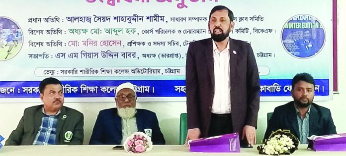 বাংলাদেশ কাবাডি ফেডারেশনের সহযোগিতায় সরকারি শারীরিক শিক্ষা কলেজ চট্টগ্রামের আয়োজনে তিন দিনব্যাপী কাবাডি রেফারিজ কোর্সের উদ্বোধন হয়েছে। গতকাল বৃহস্পতিবার কলেজ অডিটোরিয়াম এ অনুষ্ঠানে প্রধান অতিথি হিসেবে কোর্সের উদ্বোধন করেন সিজেকেএস ক্লাব সমিতির সাধারণ সম্পাদক শাহাব উদ্দিন শামীম। কলেজের ভারপ্রাপ্ত অধ্যক্ষ এস এম গিয়াস উদ্দীন বাবরের সভাপতিত্বে বিশেষ অতিথি ছিলেন কাবাডি ফেডারেশনের যুগ্ম সম্পাদক অধ্যক্ষ আবদুল হক এবং ট্রেজারার মো. মনির হোসেন। কলেজের প্রভাষক এবং কোস কো–অর্ডিনেটর সাইফুল্যা মুনিরের সঞ্চালনায় অন্যান্যদের মধ্যে উপস্থিত ছিলেন প্রভাষক খাইরুল ইসলাম, চঞ্চল বিশ্বাস, মো. নাহিদ হাসান, আসলাম হোসাইন এবং মো. আলমগীর কবির। তিন দিনব্যাপী এই কোর্সে বিভিন্ন জেলার ৭০ জন প্রশিক্ষণার্থী অংশগ্রহণ করেন।