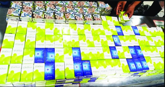 বিমানবন্দর সূত্র জানিয়েছে, গতকাল শনিবার সকাল সাড়ে ৯টায় বিমান বাংলাদেশ এয়ারলাইন্সের ফ্লাইটে মোহাম্মদ ফখরুল ইসলাম ও মোহাম্মদ আশরাফুল ইসলাম নামে দুই যাত্রী চট্টগ্রামে আসেন। তাদের ব্যাগেজে ১৯৯ কার্টন সিগারেট এবং ২৫০ পিস আমদানি নিষিদ্ধ গৌরি ক্রিম পাওয়া যায়। এগুলোর দাম প্রায় ৭ লাখ টাকা। বিমানবন্দরের জনসংযোগ কর্মকর্তা প্রকৌশলী মোহাম্মদ ইব্রাহিম খলিল জানান, আটক সিগারেটের চালান ডিএম মূলে জব্দ করা হয়, যা চট্টগ্রাম কাস্টমস হাউসের হেফাজতে থাকবে। আটক দুই যাত্রীকে বিমানবন্দর কাস্টমস শাখার কর্মকর্তারা মৌখিকভাবে সতর্ক করে ছেড়ে দিয়েছেন।