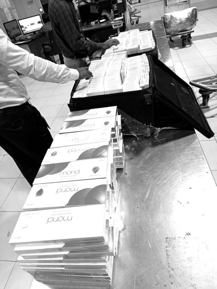 বিমানবন্দর সূত্র জানায়, গোপন সংবাদের ভিত্তিতে বৃহস্পতিবার রাত ৯টা ৪৫ মিনিটে এয়ার এরাবিয়ার ফ্লাইট নম্বর জি৯–৫২০ চট্টগ্রামে অবতরণ করার পর উক্ত যাত্রী বের হয়ে যাচ্ছিলেন। পরে তার লাগেজ তল্লাশি করে সিগারেটগুলো জব্দ করা হয়। জব্দকৃত সিগারেটের মূল্য প্রায় ৬ লাখ ৩০ হাজার টাকা। বিমানবন্দর কর্তৃপক্ষ জানিয়েছে, আমদানি নিষিদ্ধ পণ্যের অনুপ্রবেশ ও রাজস্ব ফাঁকি প্রতিরোধে এনএসআই, কাস্টমস এবং সংশ্লিষ্ট সংস্থাগুলোর সমন্বয়ে নজরদারি কার্যক্রম আরও জোরদার করা হবে।