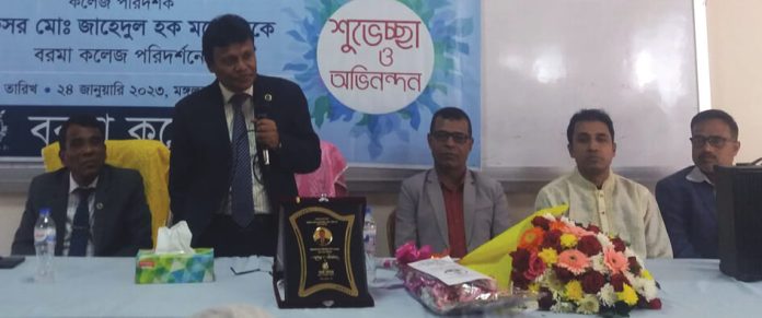 মাধ্যমিক ও উচ্চ মাধ্যমিক শিক্ষা বোর্ড চট্টগ্রামের কলেজ পরিদর্শক প্রফেসর মো. জাহেদুল হক চন্দনাইশের বরমা ডিগ্রি কলেজ পরিদর্শন উপলক্ষে ২৮ জানুয়ারি এক শুভেচ্ছা সমাবেশ অধ্যক্ষ কৃষিবিদ মোহাম্মদ জাহাঙ্গীর আলমের সভাপতিত্বে এবং ব্যবস্থাপনা বিভাগের প্রভাষক ও শিক্ষক পরিষদ সম্পাদক মোহাম্মদ আলীর সঞ্চালনায় অনুষ্ঠিত হয়।