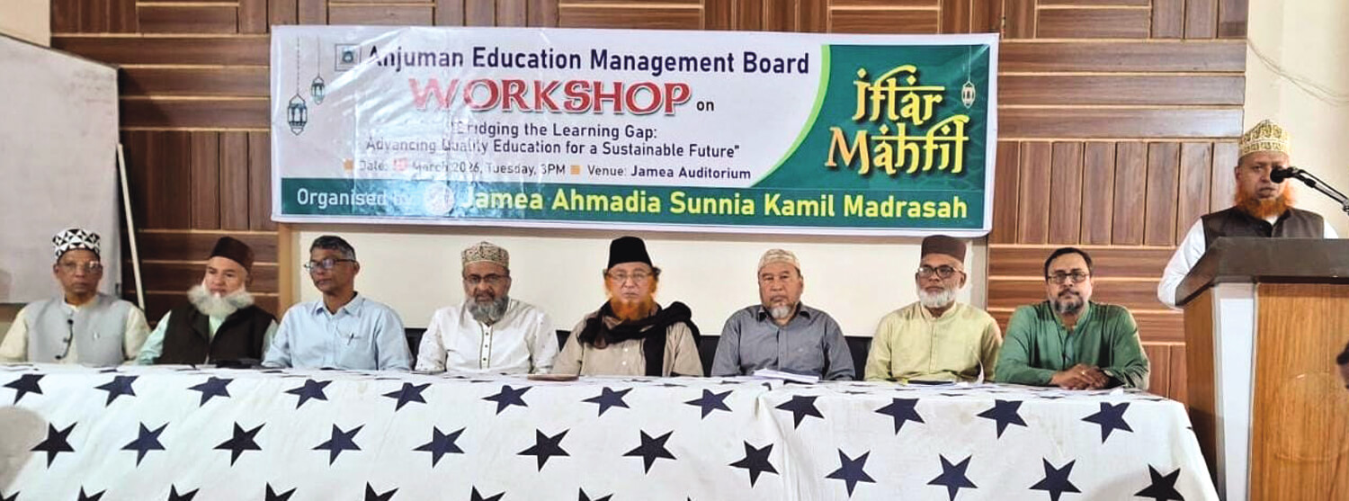 শিক্ষার মানোন্নয়ন, শিখন–ঘাটতি দূরীকরণ এবং টেকসই ভবিষ্যতের জন্য দক্ষ মানবসম্পদ গড়ে তোলার লক্ষ্যকে সামনে রেখে জামেয়া আহমদিয়া সুন্নিয়া কামিল মাদ্রাসায় শিক্ষকদের অংশগ্রহণে এক কর্মশালা আনজুমান এডুকেশন ম্যানেজমেন্ট বোর্ডের উদ্যোগে গত ১০ মার্চ মাদ্রাসার জামেয়া একাডেমিক ভবন–১ মিলনায়তনে অনুষ্ঠিত হয়।