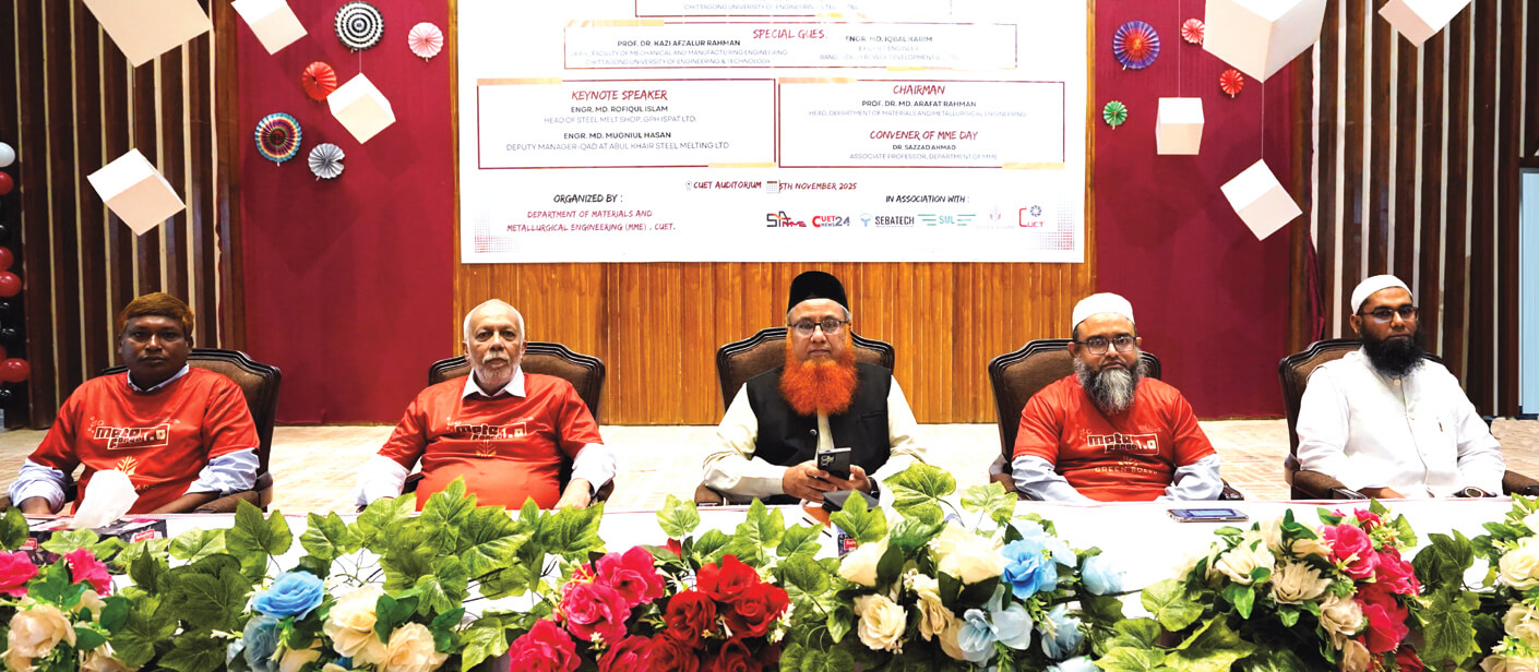 গতকাল বুধবার চুয়েটের কেন্দ্রীয় অডিটোরিয়ামে ম্যাটেরিয়ালস এন্ড ম্যাটালর্জিক্যাল ইঞ্জিনিয়ারিং বিভাগের (এমএমই) এমএমই ডে উপলক্ষে আয়োজিত ‘মটাফোর্জ ১.০’ শীর্ষক অনুষ্ঠানে প্রধান অতিথির বক্তব্যে তিনি এসব কথা বলেন। বিশেষ অতিথি ছিলেন মেকানিক্যাল এন্ড ম্যানুফ্যাকচারিং ইঞ্জিনিয়ারিং অনুষদের ডীন অধ্যাপক ড. কাজী আফজালুর রহমান এবং বাংলাদেশ বিদ্যুৎ উন্নয়ন বোর্ডের সাবেক প্রধান প্রকৌশলী মো. ইকবাল করিম। কী–নোট স্পীকার ছিলেন জিপিএইচ ইস্পাত লিমিটেডের স্টিল মেল্ট শপের হেড প্রকৌশলী মো. রফিকুল ইসলাম ও আবুল খায়ের স্টিল মেল্টিং লিমিটেডের ডেপুটি ম্যানেজার (কিউএডি) প্রকৌশলী মো. মুগনিউল হাসান।