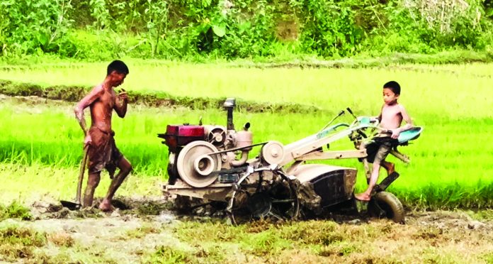 পাহাড় জুড়ে মেঘ আর বৃষ্টি। সমতল ভূমিতে চলছে ধানের চারা রোপণ। শুক্রবার বিকেলে খাগড়াছড়ি জেলা সদরের নিভৃত পল্লী পেরাছড়ায় ফসল বোনার প্রস্তুতি চলছিল। ছোট্ট শিশু ১২ হর্সপাওয়ারের পাওয়ার টিলার চালিয়ে জমিতে চাষ দিচ্ছে। শিশুটির নাম মারুফ মারমা। বয়স সাত বছর। এই বয়সে অন্তত ৪০ শতক আয়তনের জমি চাষ দিচ্ছে সে। স্কুল যাওয়ার বয়স হলেও মারুফের শৈশব কাটছে কৃষি জমিতে। বন্ধুদের সাথে দুরন্ত শৈশব পার করার বদলে অভাবের সংসারে বাবাকে সাহায্য করছে।