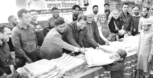 যুবলীগ : নগরীতে বঙ্গবন্ধুর স্বদেশ প্রত্যাবর্তন দিবস উপলক্ষে যুবলীগ ঘোষিত কর্মসূচির অংশ হিসেবে শীতবস্ত্র কম্বল বিতরণ করা হয়েছে। সাবেক ছাত্রনেতা সাইফুদ্দীন আহমদের সার্বিক ব্যবস্থাপনায় গতকাল কম্বল বিতরণ অনুষ্ঠানে প্রধান অতিথি ছিলেন সাবেক মহানগর যুবলীগের সদস্য মোহাম্মদ সোহেল রানা। উপস্থিত ছিলেন তাজুদ্দীন রিজভী, মোহাম্মদ বেলাল, মোহাম্মদ সায়েম, মোহাম্মদ হাসান, তারেক হায়দার, আমিনুল ইসলাম লিটন, মোহাম্মদ সাইফুল ইসলাম, শাহনেওয়াজ রাজীব, সুমন, মোজাহেরুল ইসলাম রিপন, তৌকির আহম্মদ, টিপু, ইফতি, আনন্দ প্রমুখ। অনুষ্ঠানে বক্তারা অসহায় শীতার্তদের মাঝে শীতবস্ত্র কম্বল বিতরণে সমাজের বিত্তবানদের এগিয়ে আসার আহ্বান জানান।