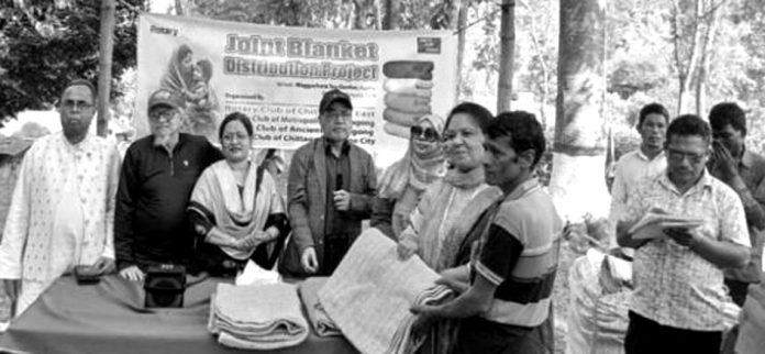 চলমান মানবিক কার্যক্রমের ধারাবাহিকতায় রোটারি ক্লাব অব চিটাগং ইস্টসহ চারটি ক্লাবের উদ্যোগে মঙ্গলবার দুপুরে কাপ্তাইয়ের বরইছড়ি কর্ণফুলী নুরুল হুদা কাদেরী উচ্চবিদ্যালয়ের শিক্ষার্থী ও ওয়াজ্ঞাছরা চা–বাগান শ্রমিকদের মাঝে সাড়ে তিনশ (৩৫০) টি কম্বল বিতরণ করা হয়।